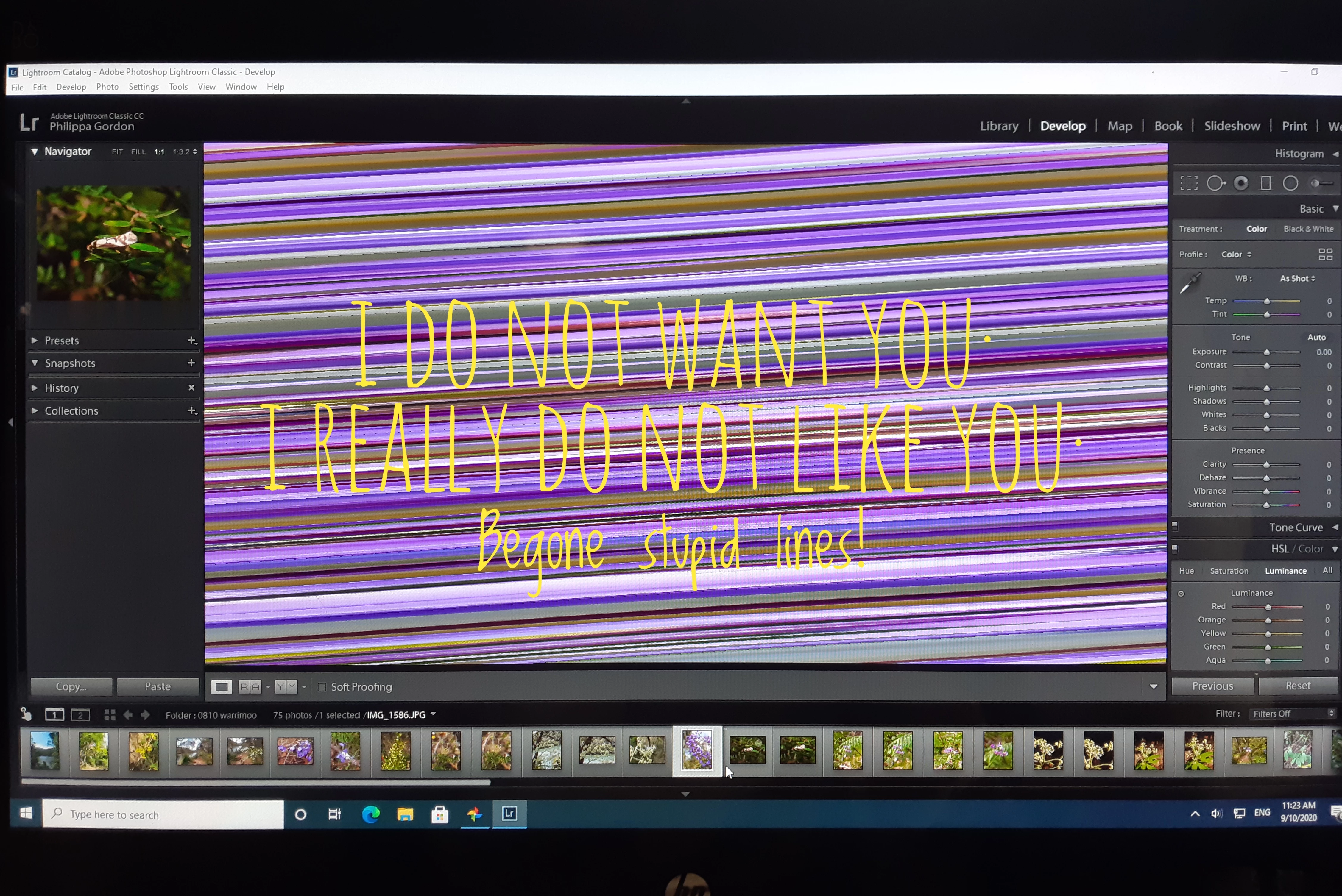 Images display as diagonal lines in LR Develop module after Windows 10 upgrade