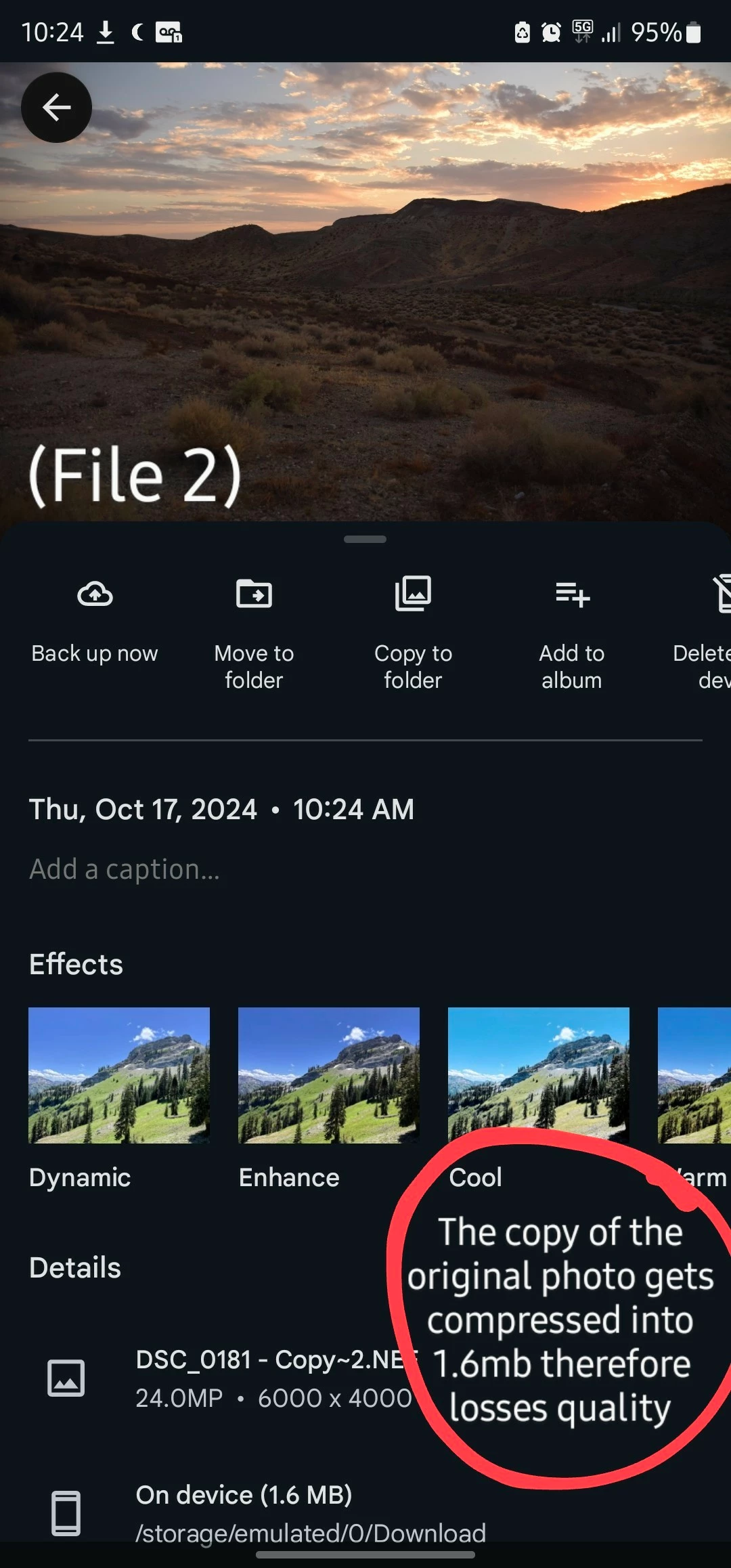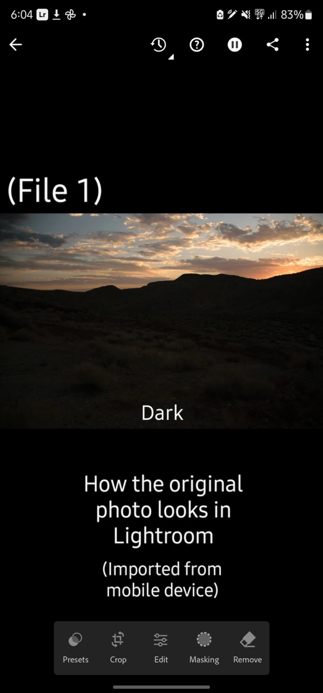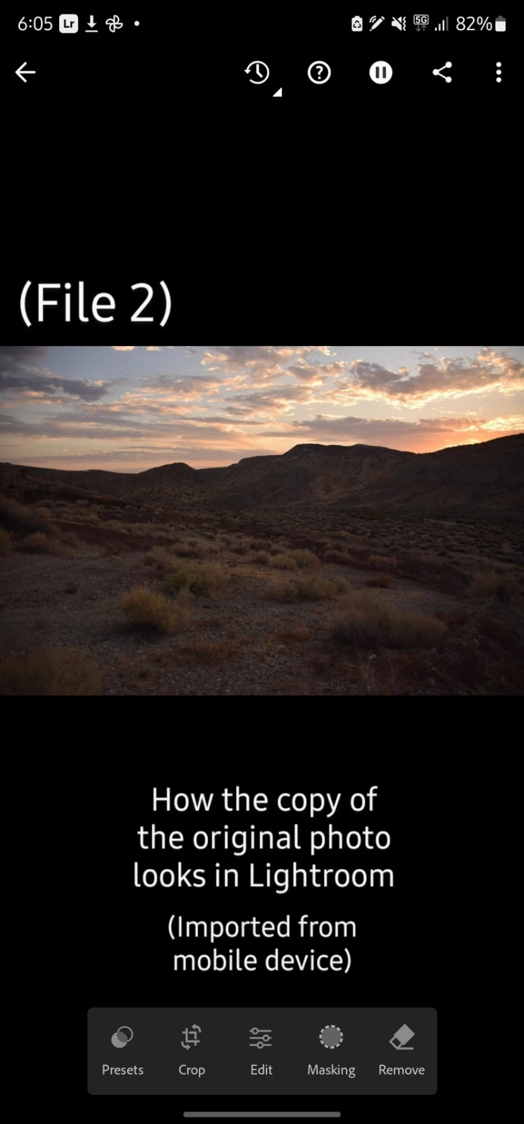 Step 3. Import the copy (File 2) into Lightroom. The copy was made in Google Photos of my mobile device.