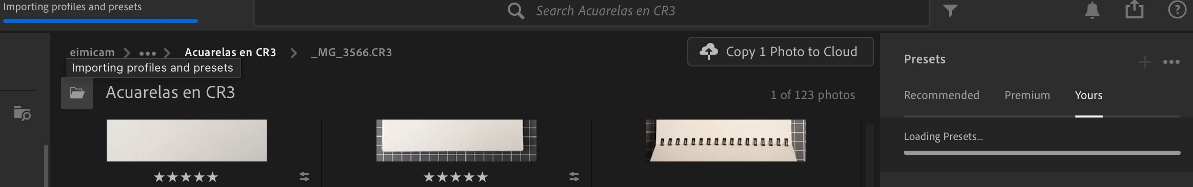 Importing presets from the Preset panel - Import Preset or from File - Import profiles & presets results in the same scenario, Lightroom stuck in the stage of Importing/Loading presets.