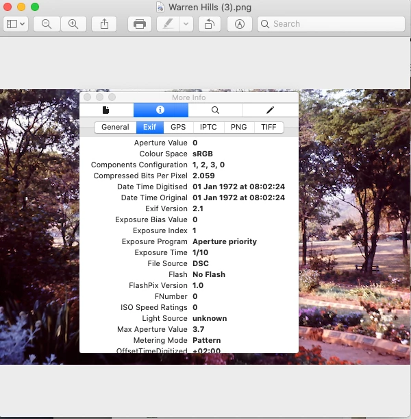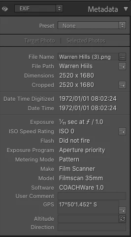 I am new to Lightroom CC so forgive me if I am posting this in the wrong place. I am importing a large number of images that have been exported from Apple photos. The be clear the export process I am using is to export the edited images (not the unmodified original) into folders in Finder. These images are from scans of old photos, all have their capture date and location information added. This is a example of one such exported image opened in Preview showing the EXIF data.