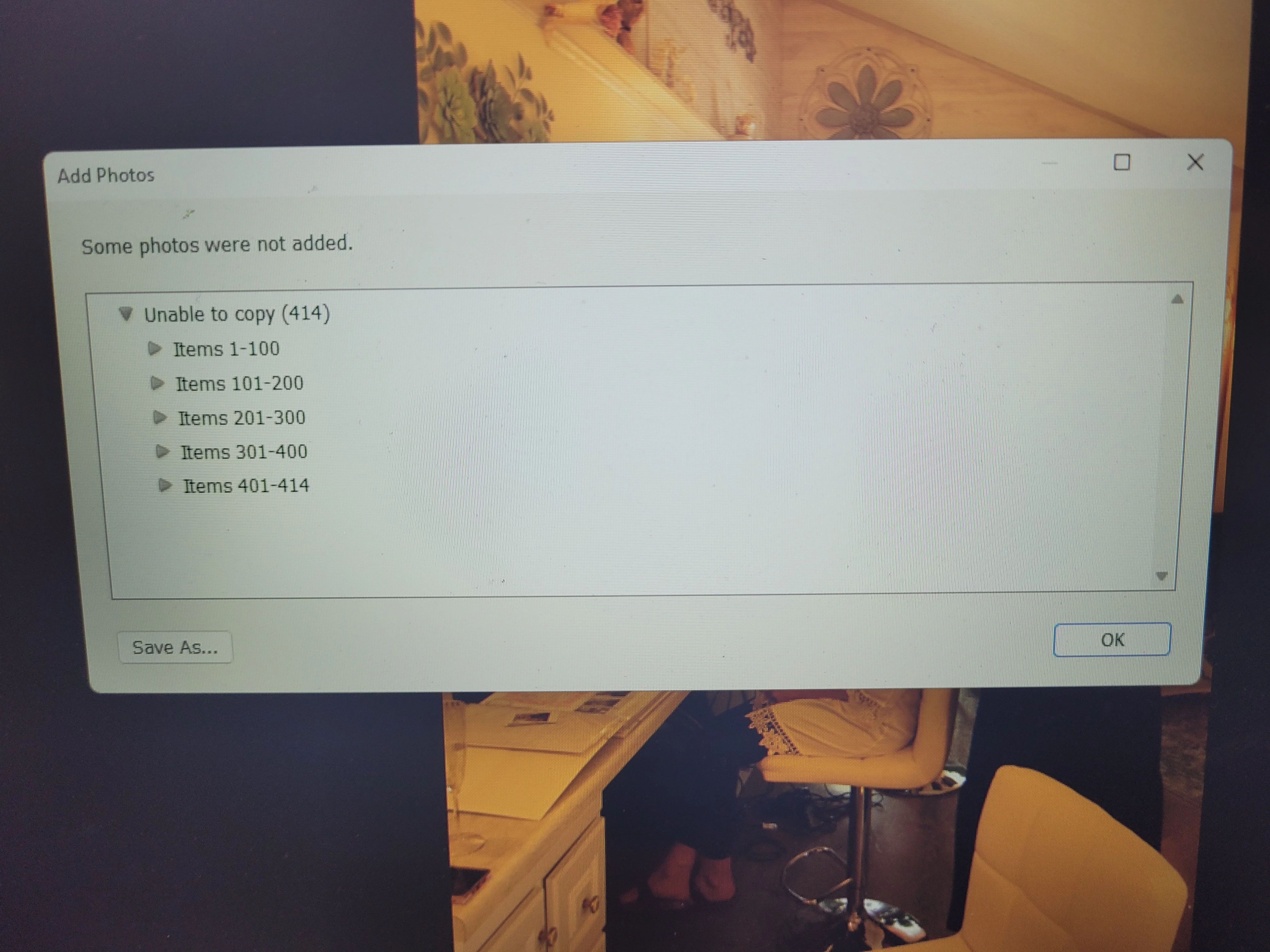 I have about 430 raw wedding photos I am trying to import for editing. However, lightroom keeps giving me an error that they could not be added.