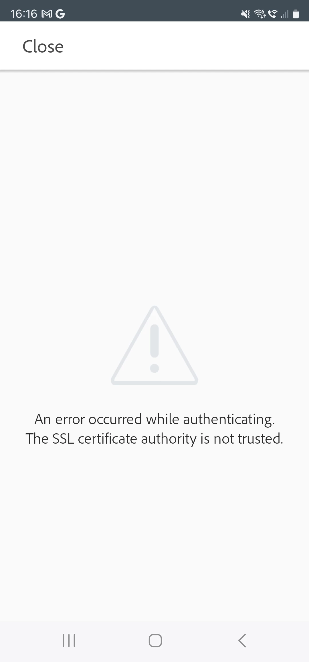Installed lightroom on Galaxy S23, cannot login with adobe account - SSL certificate authority ...