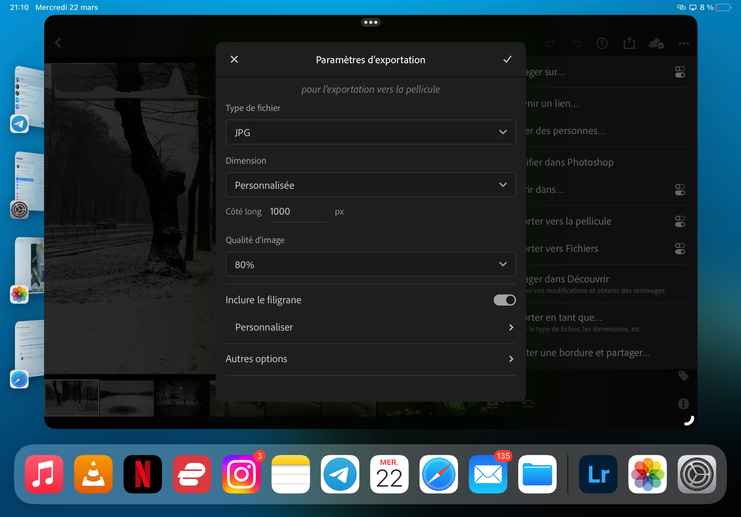 Issue with trying to adjust the exports Settings in Lightroom Mobile
