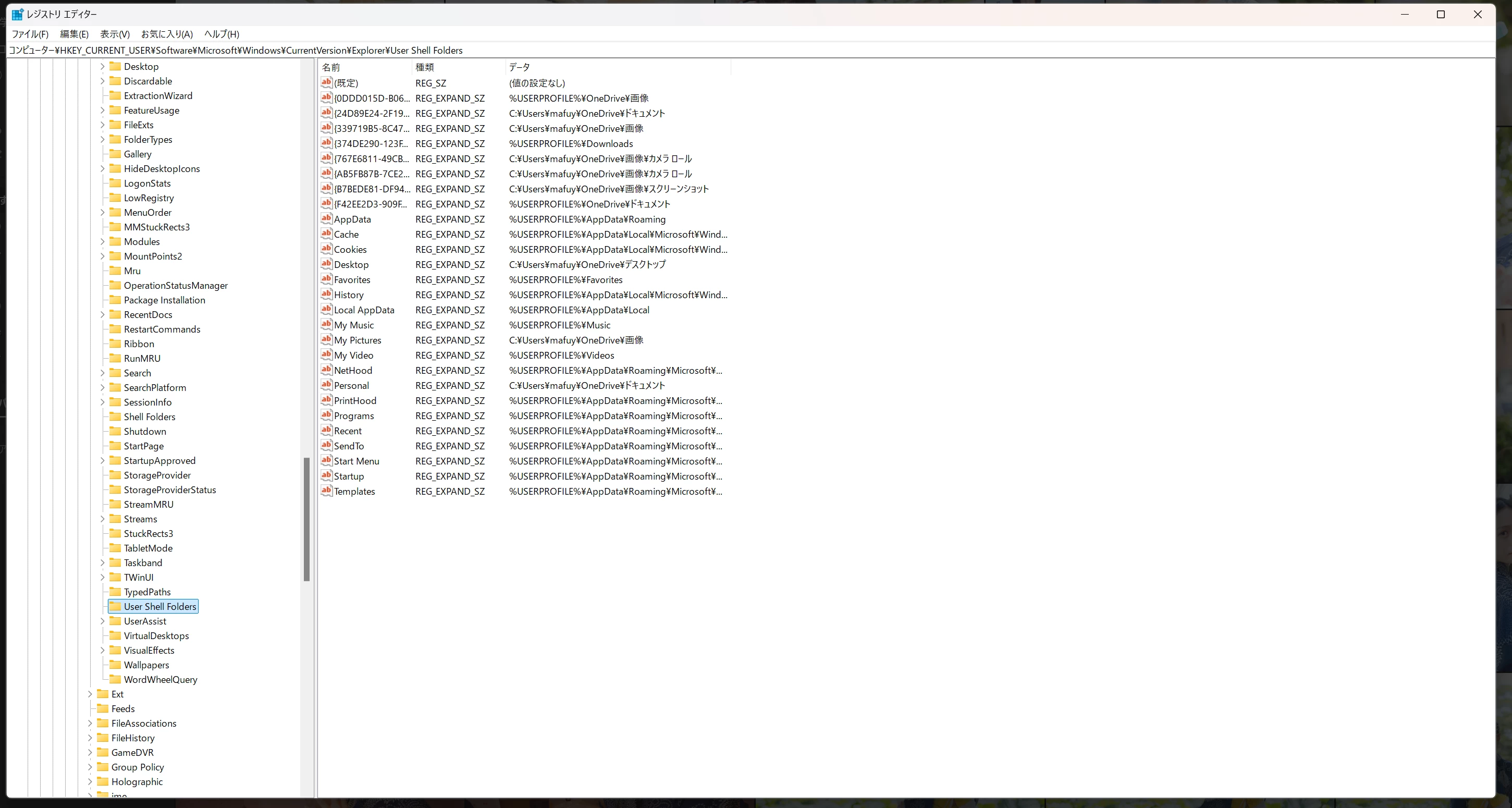 • Navigate to the following location in Registry Editor: HKEY_CURRENT_USER\SOFTWARE\Microsoft\Windows\CurrentVersion\Explorer\User Shell Folders