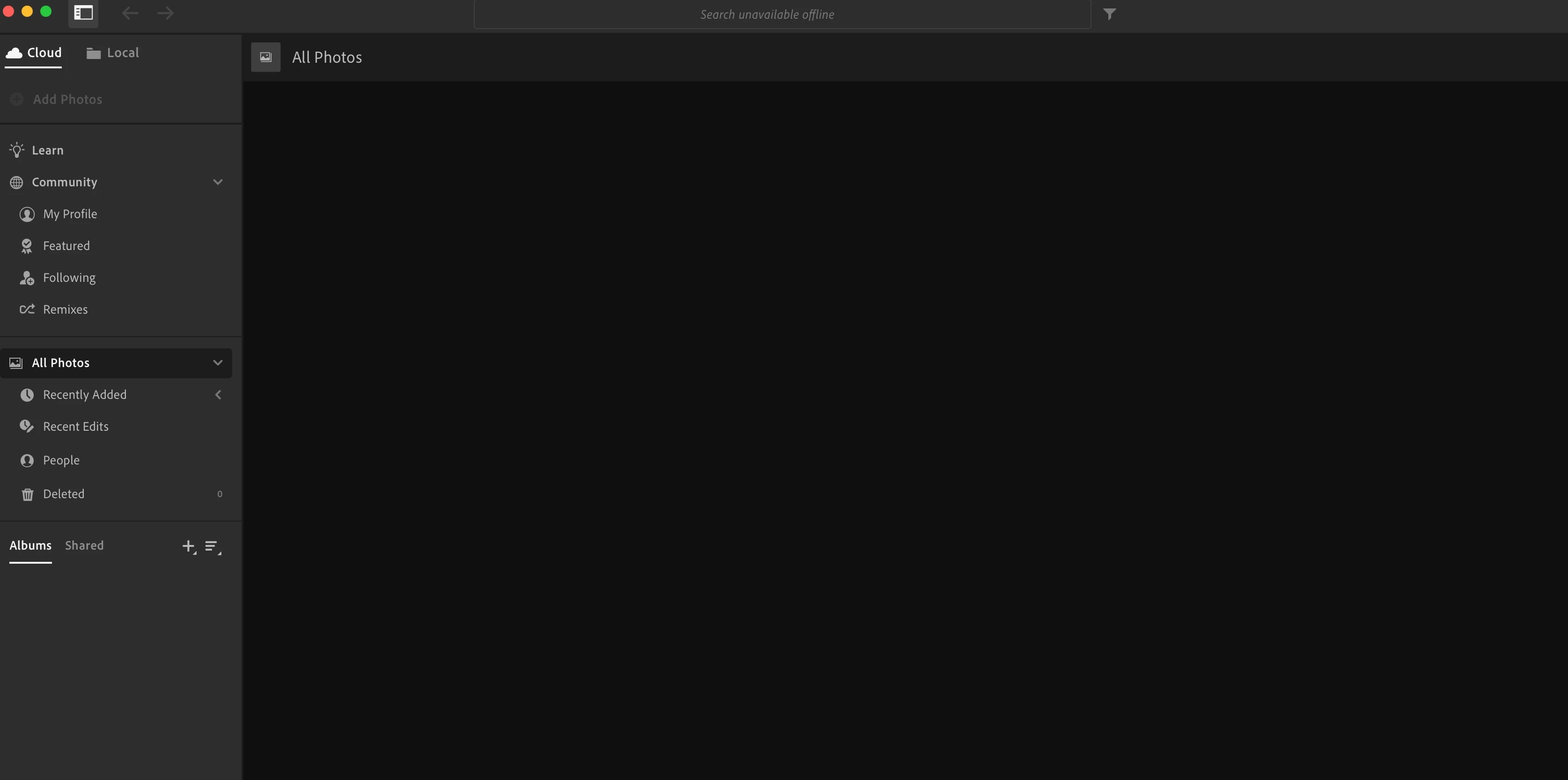 This latest epsiode is it thinks I'm offline as shown by the search bar and also that there is not one photo anywhere!