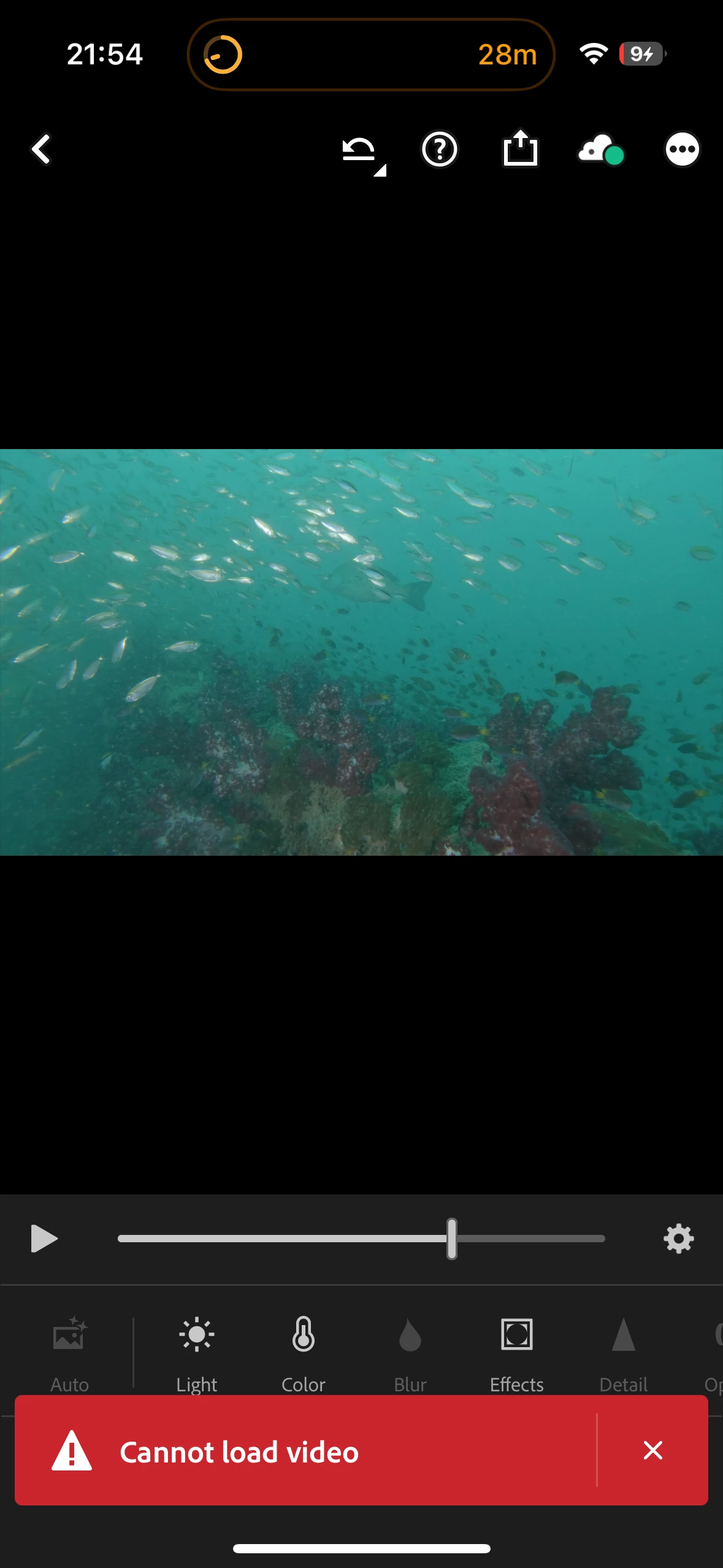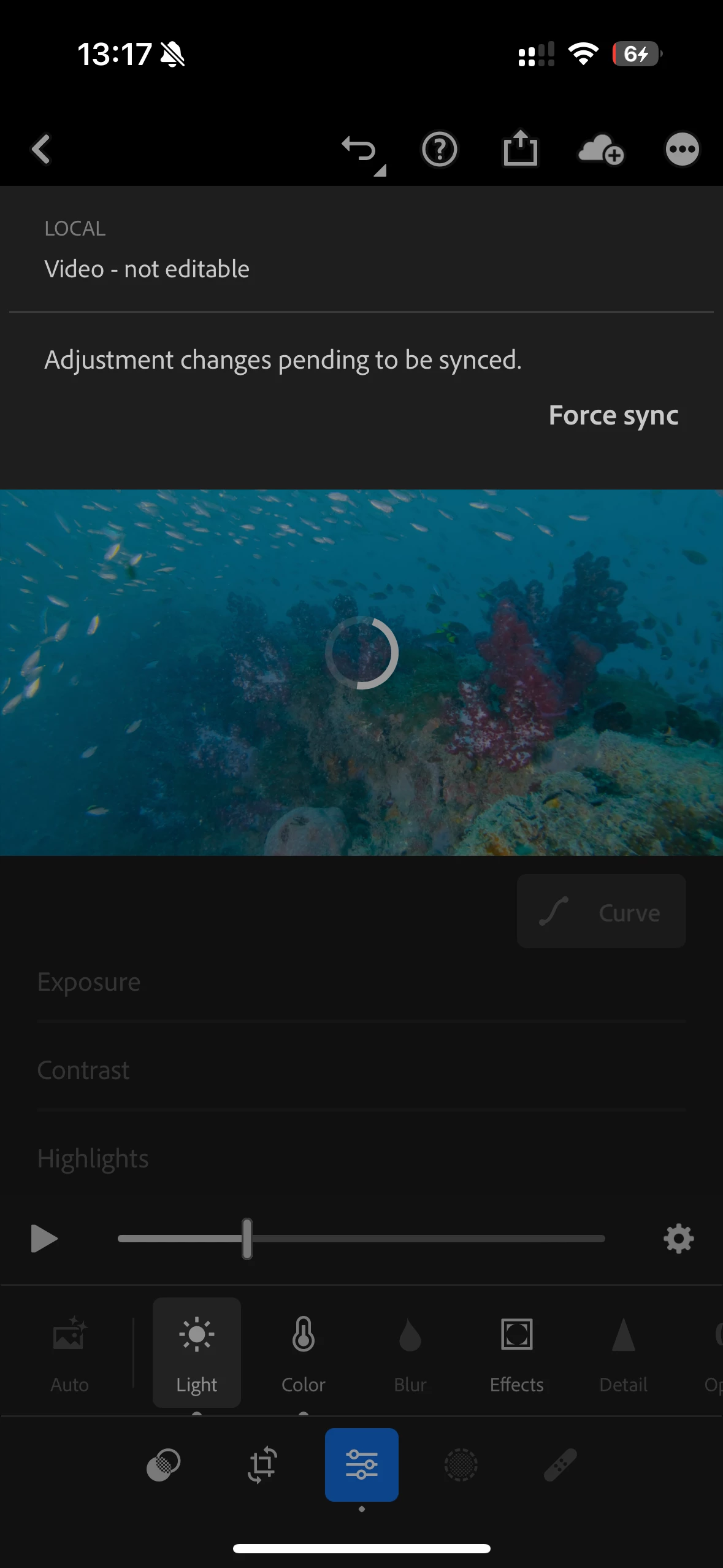 I have the premium version of Lightroom for IOS, running on an iPhone 15 Pro. I am trying to edit 5.3k GoPro footage, mostly colour grading.