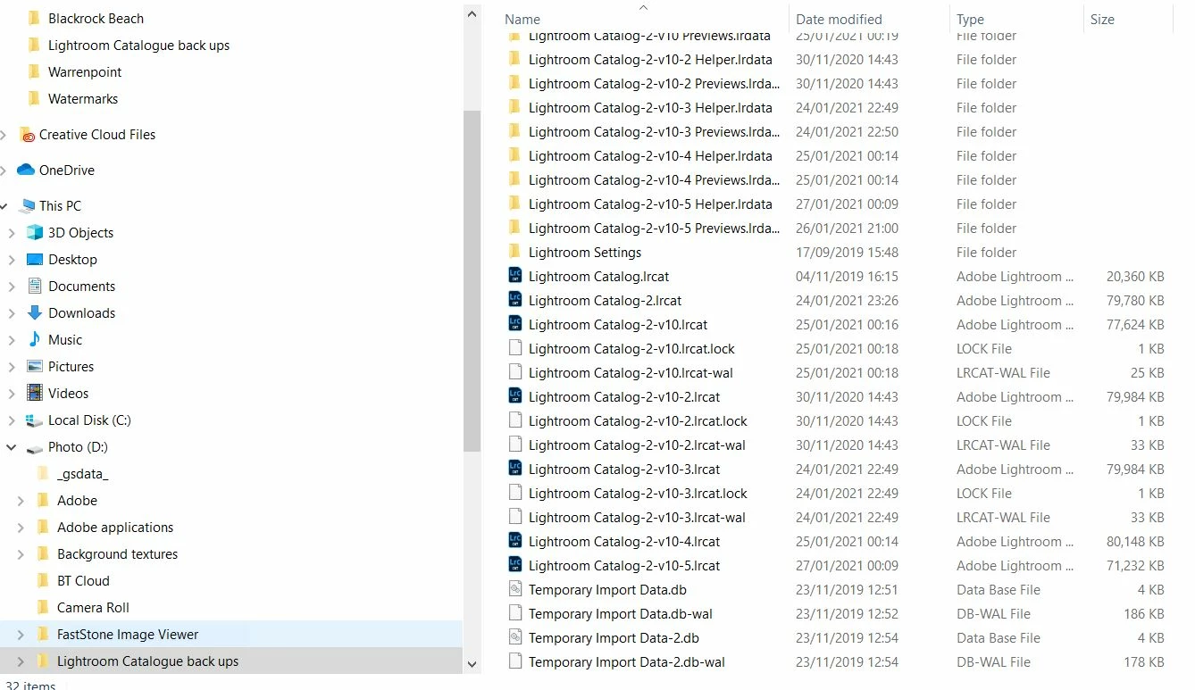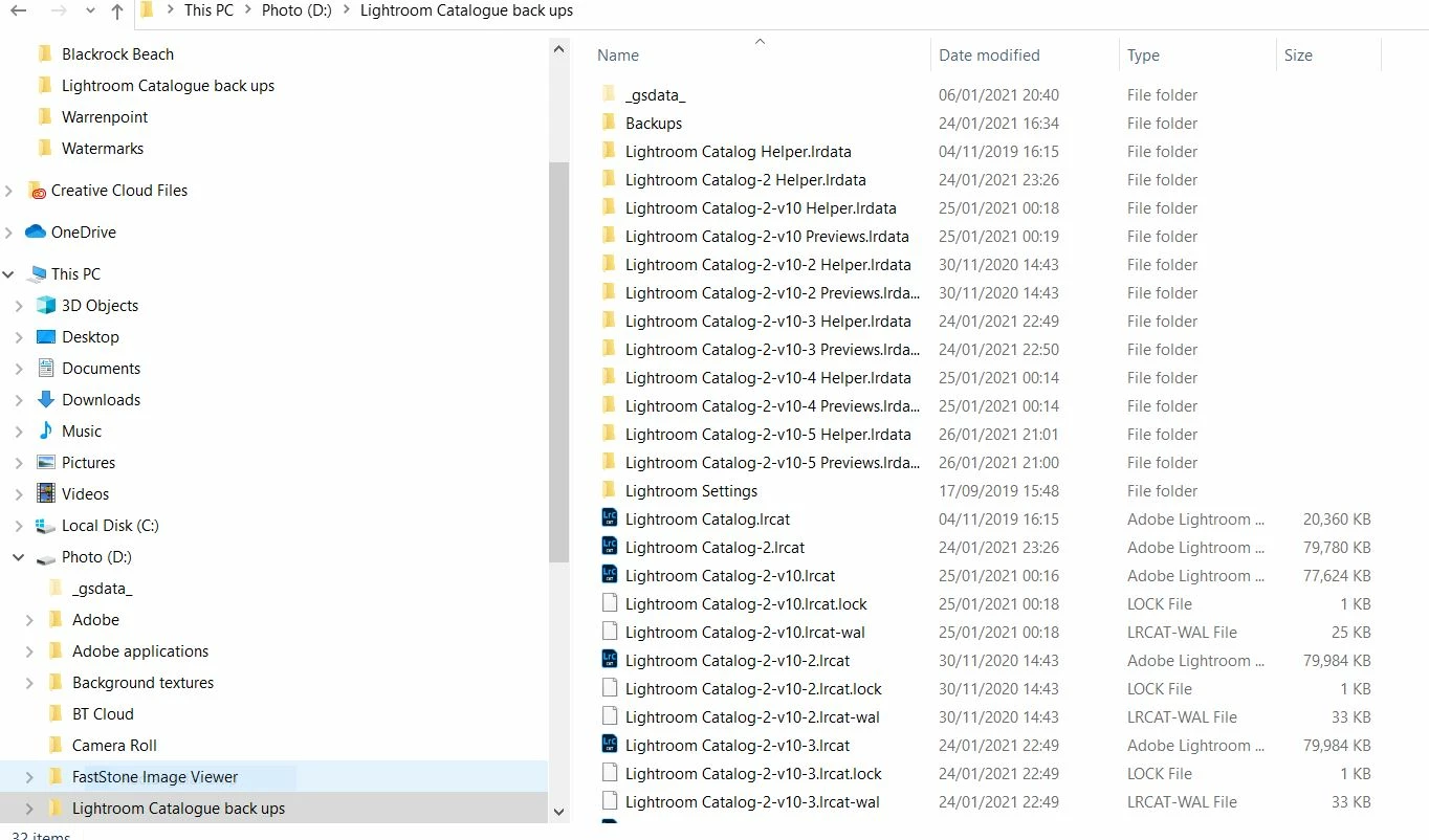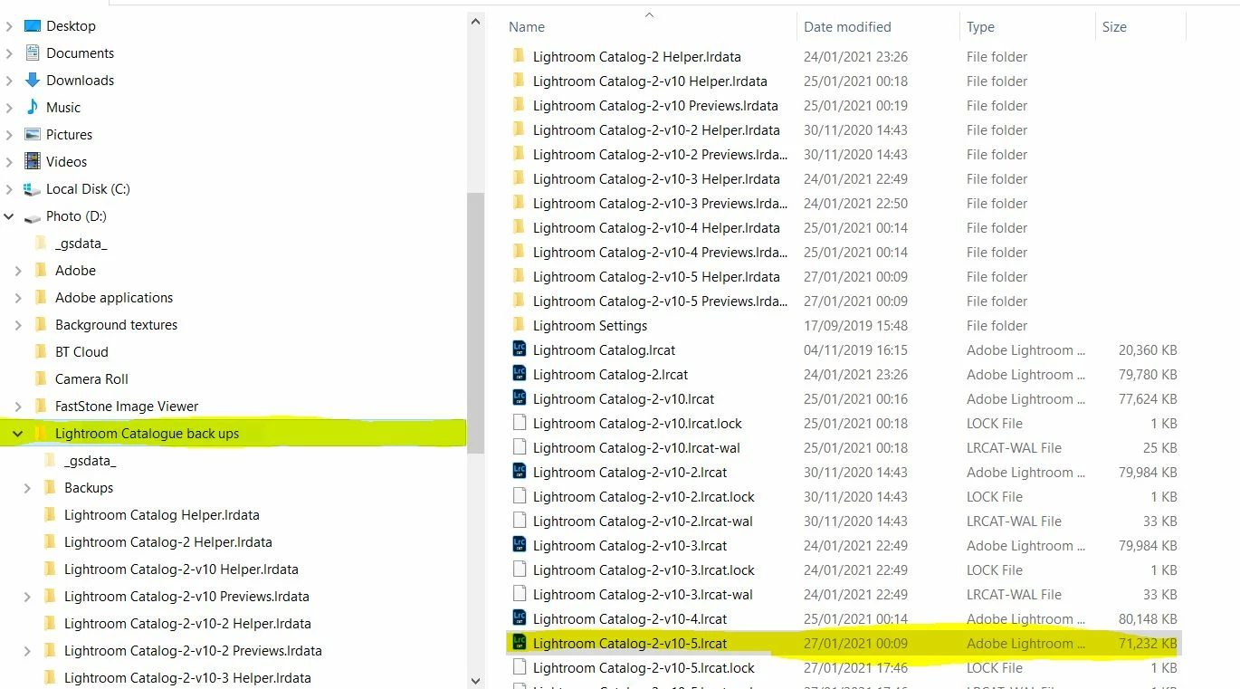 Looking some help please, I do a weekly backup of lightroom and the backups are all messed up so can someone tell me what i can keep and what i can delete? The hightlighted catalogue is the one im using in LR. TIA