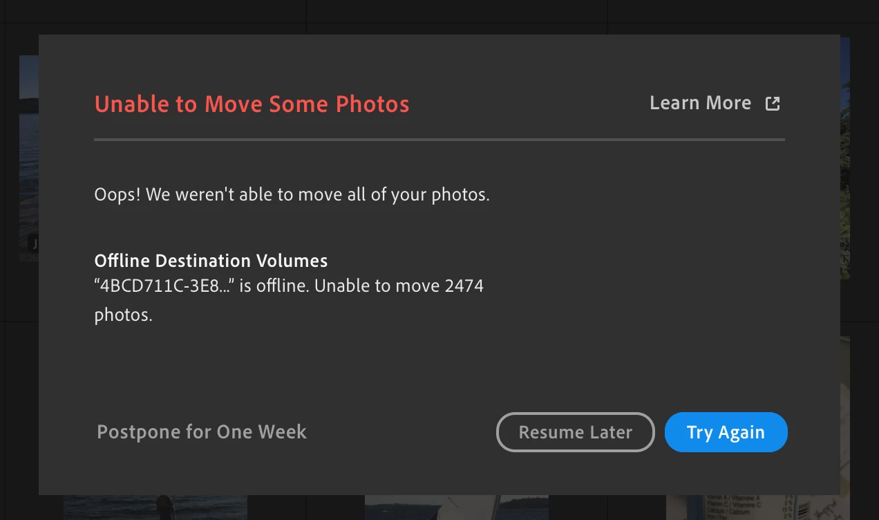 I've recently updated to Catalina (I'm not sure if this is relevant). While the ipad lightroom cc app is working fine, the desktop version does not allow me to upload new photos. The grid display also shows a red exclamation mark beside 75% of the photos. When I hover the mouse over the cloud icon in the top right corner I get the message "the storage drive containing your originals is disconnected". I'm also not sure if the desktop is synching with the cloud. That said changes to photos on my ipad will appear to in the desktop version so something must be synching. I've attached a few screen shots of the error messages. Suggestions? Is this because of Catalina and I just need to wait for a new update?