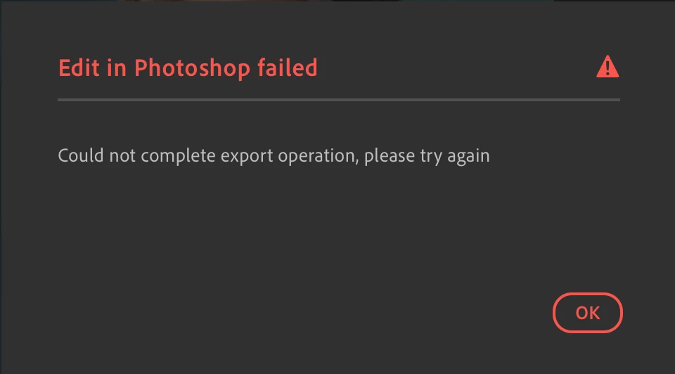 Hi! I was editing an image on my Macbook Pro in Lightroom CC, opened it in Photoshop CC, then accidentally quit before it saved back to Lightroom. Now every time I try to open an image in Lightroom to edit in Photoshop I get an error message (see below). I tried running Creative Cloud cleanup but it didn't help. Any advice.