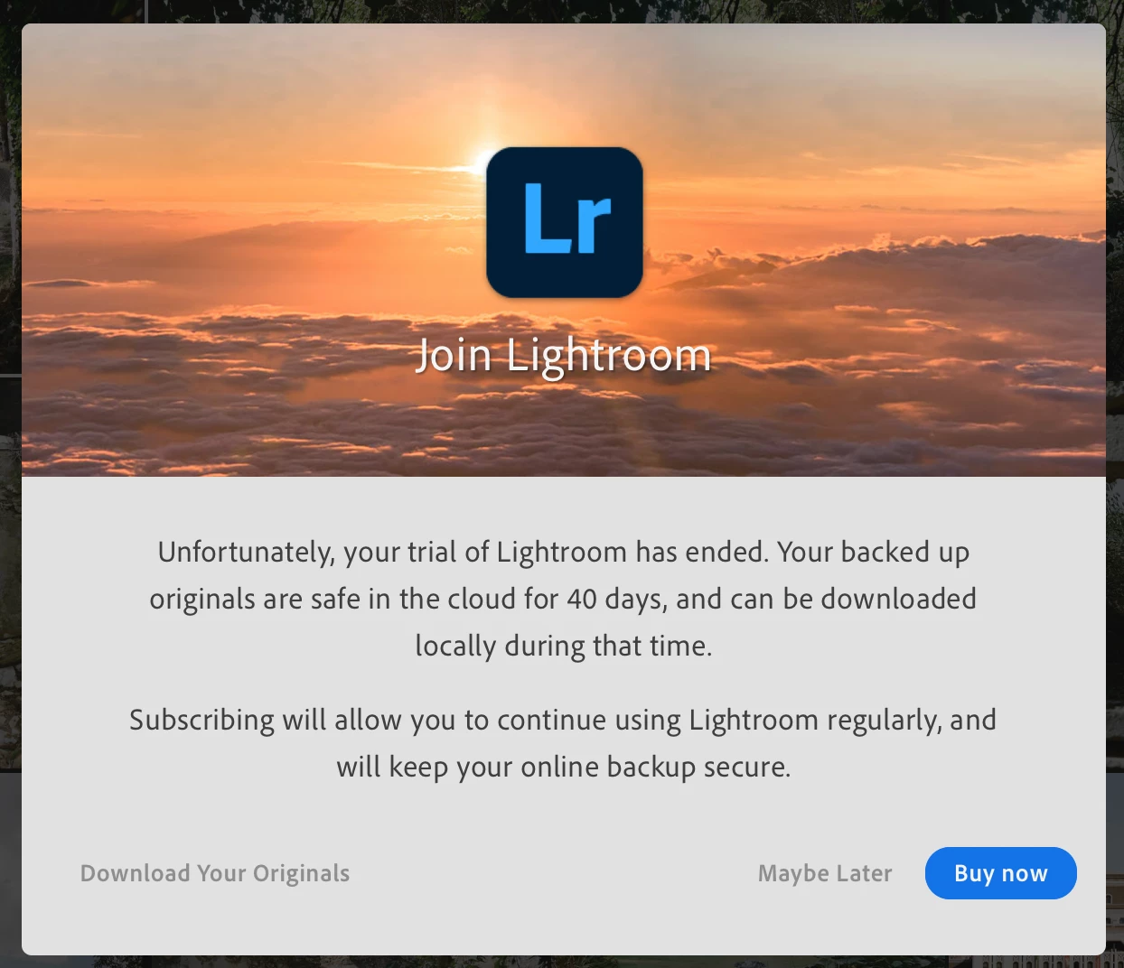 Lightroom CC Trial has 'expired' despite it being on account. Help!