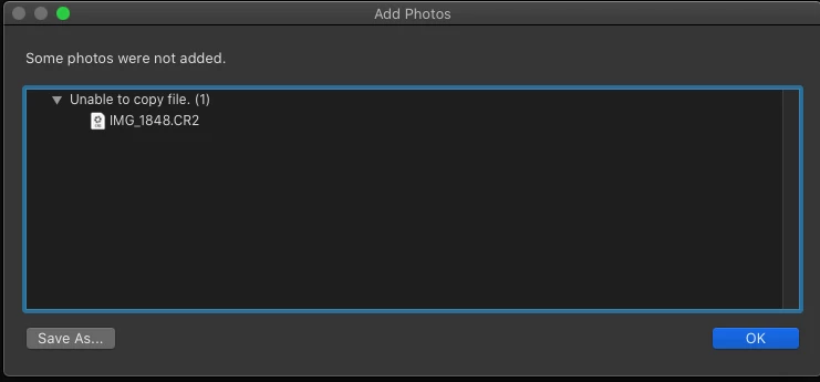 Lightroom CC will not add photos
