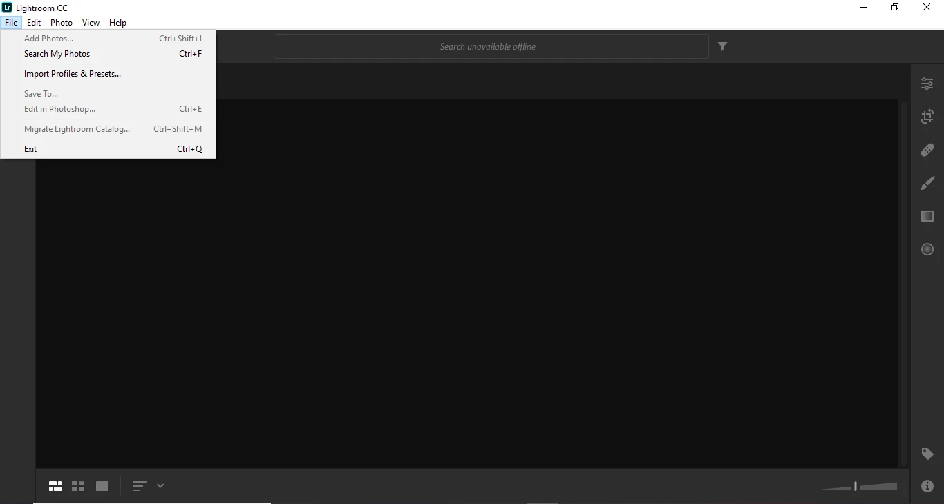 Sorry that you cannot add photos in Lightroom desktop as "Add Photos" option is grayed out and the Library is black.