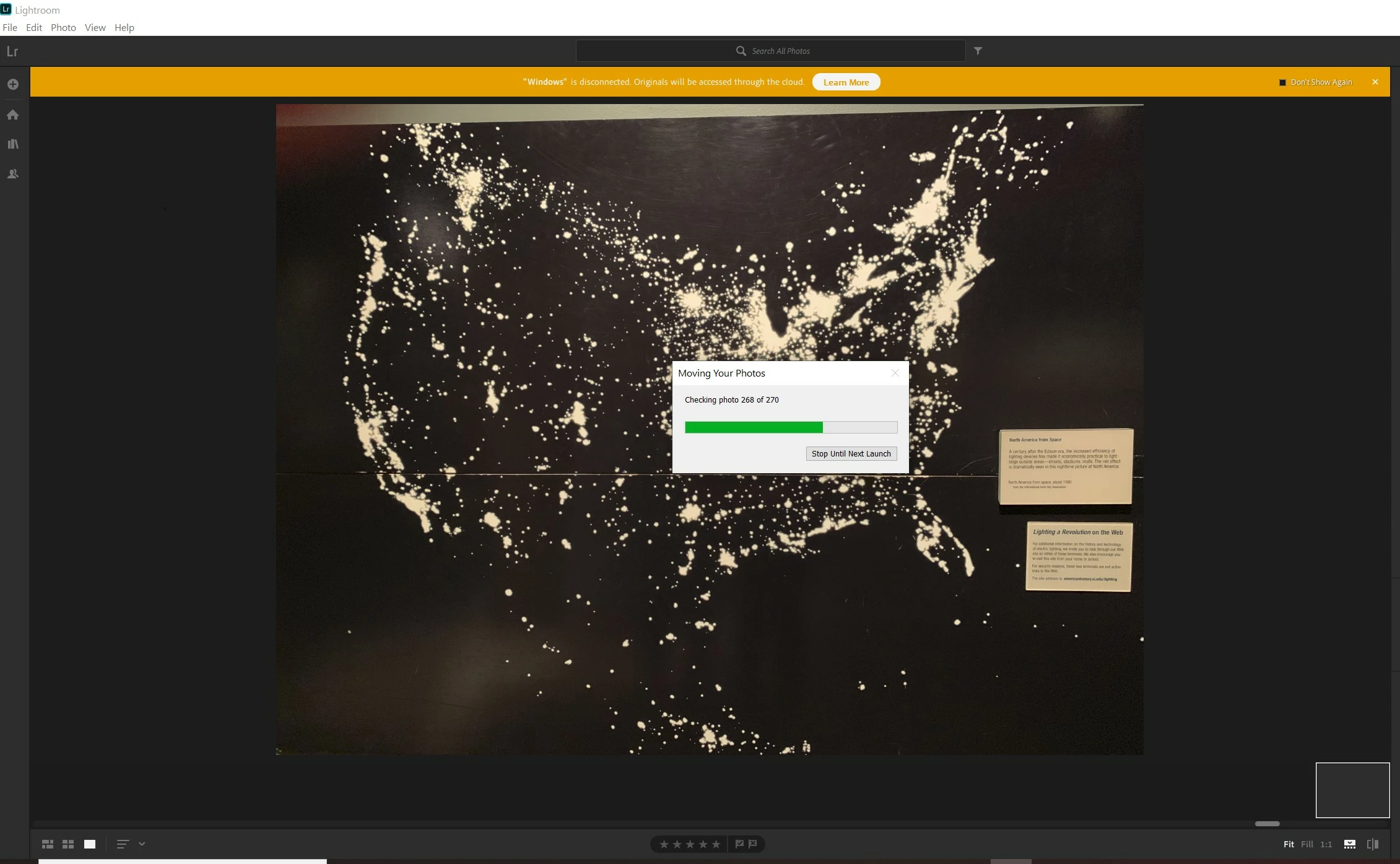 Lightroom desktop gets stuck starting up and moving images on Windows 10