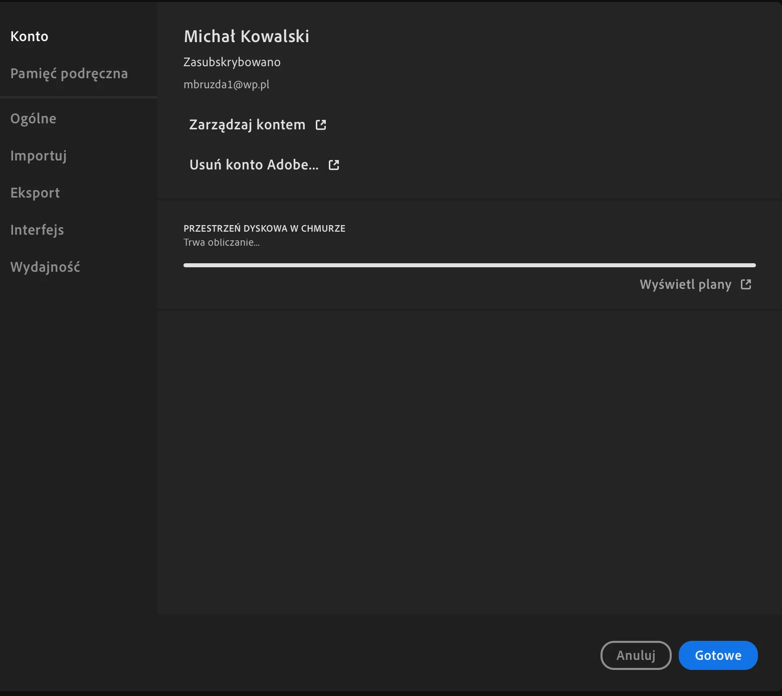 3. When I open Preferences in CC, my cloud storage status shows correcly. LR is not able to load that data (as it wouldn't be able to load anything at all apart basic UI - it just freezes on "count in process").