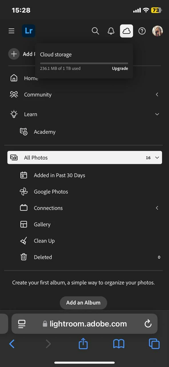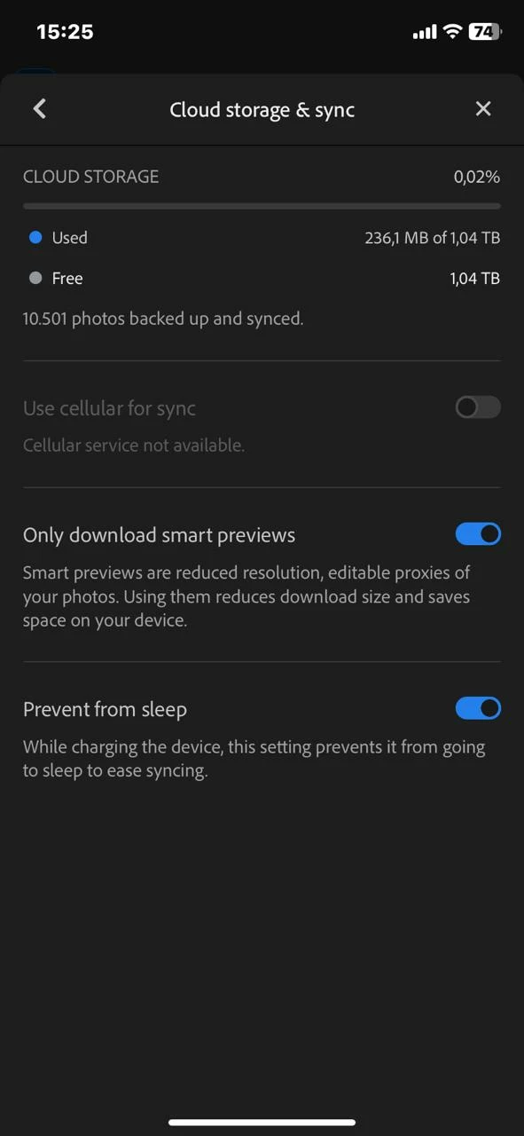 It's as if the photos never upload to cloud, but I know they do since my phone storage is only 64GB and when I import new photos, they eventually free up space. Speaking of storage, in every platform it says I'm only using ~200MB out of 1TB which doesn't really make sense due to the actual amount of data. When I tried Adobe support, they said I had 120GB out of 40GB (that was before I upgraded, the guy didn't seem to understand or care much about my issue). I looked up and down all over the Internet and couldn't find anyone with the same problem.