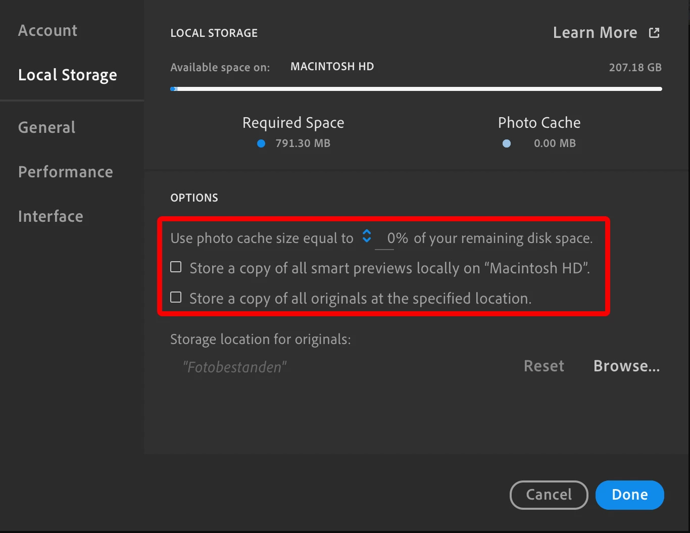 I have a small SSD and only about 14GB of my LR cloud storage used.