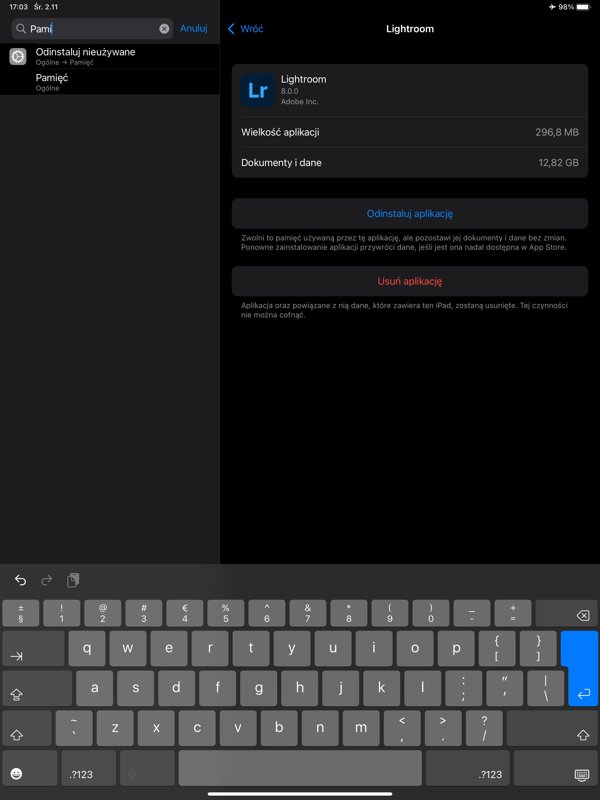 The problem is while I work offline for weeks being in places without intenret access. I used to download my raw pictures to ipad and then convert into DNG because it safes a disc space. After converting files and moving them to the disc I delete pictures and empty trash. The problem is still occupyed space even when on disc I have approximately 30 pictures only. I've no idea how to release the space?