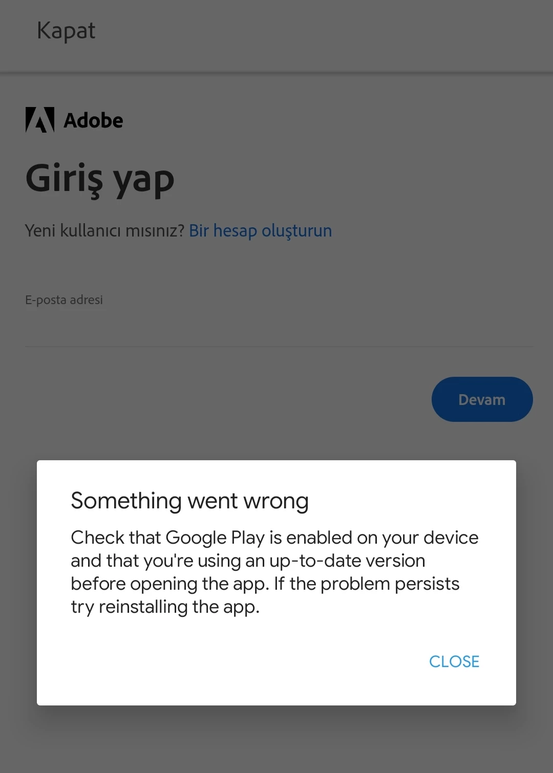 Check that Google Play is enabled on your device and that you're using an up-to-date version before opening the app. If the problem persists try reinstalling the app."