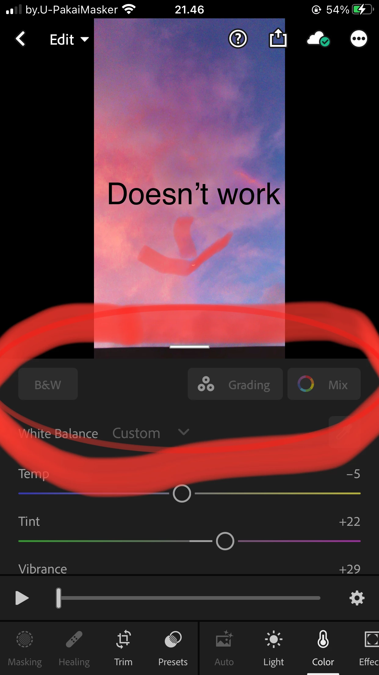 Lightroom Mobile (iOS) Editing Video - Color panel Missing
