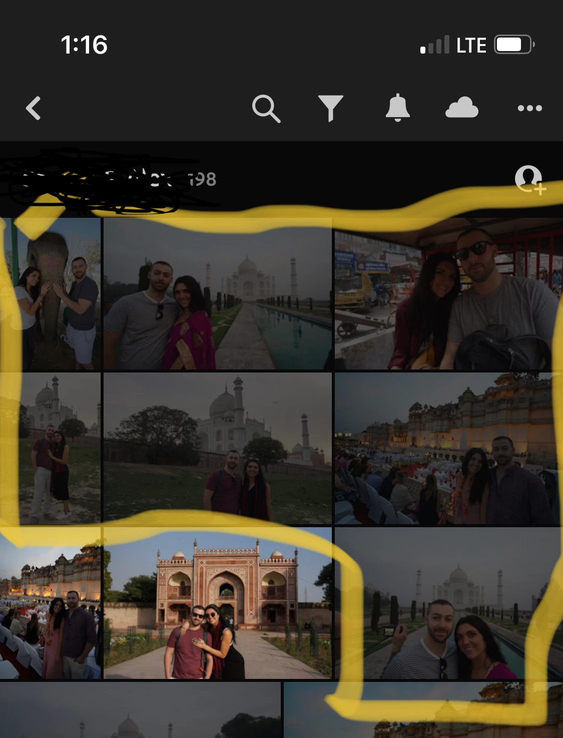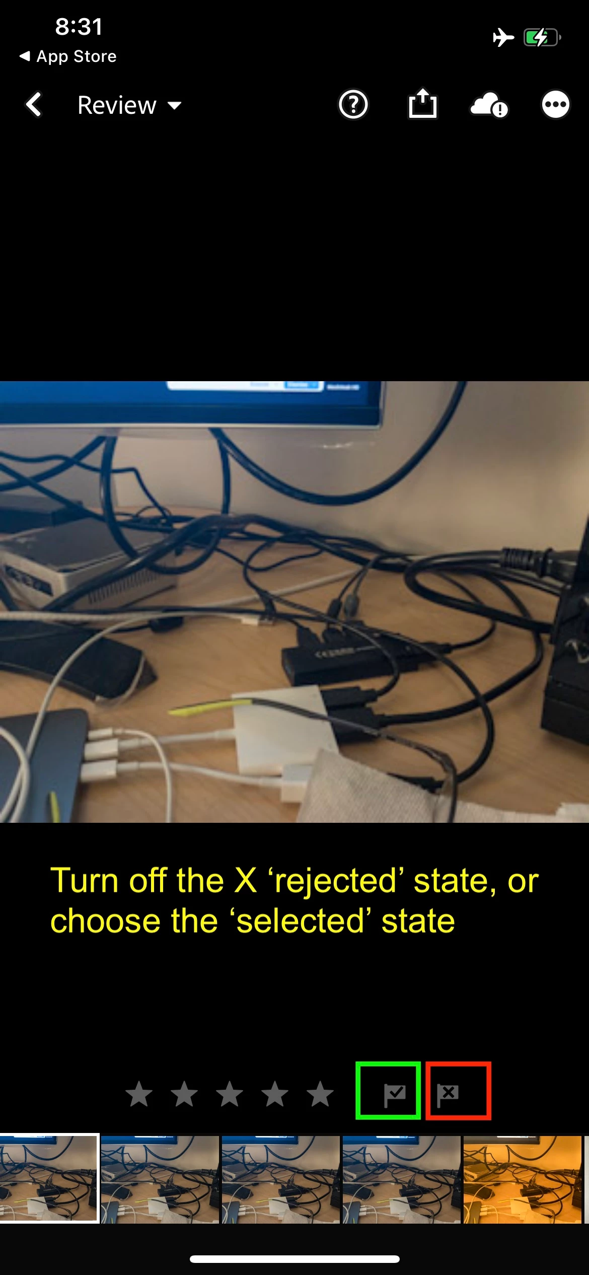 Greyed out as shown in your screenshot would suggest they're marked with a reject flag. If you tap on one of the greyed out photos and then select Rate & Review mode at the top, you'll probably find that they have a flag with an X in them at the bottom of the screen.