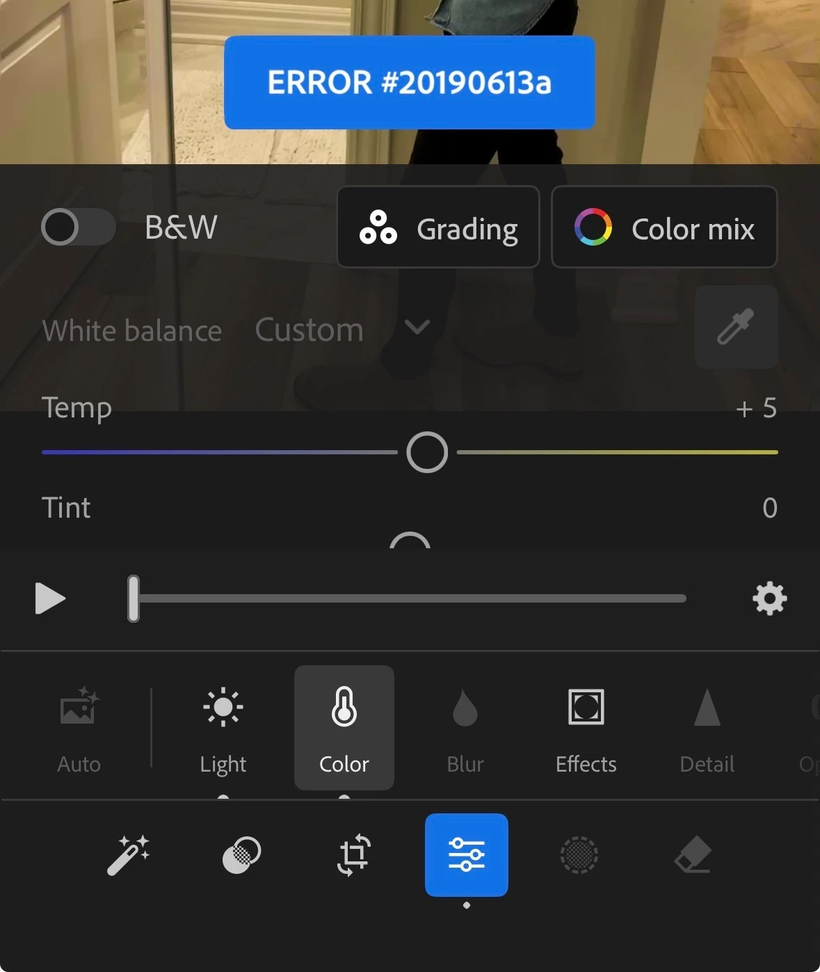Lightroom Mobile (iOS): Video Editing Errors 20190613a (Save Preset) and 20190613b (Copy/Paste Settings)