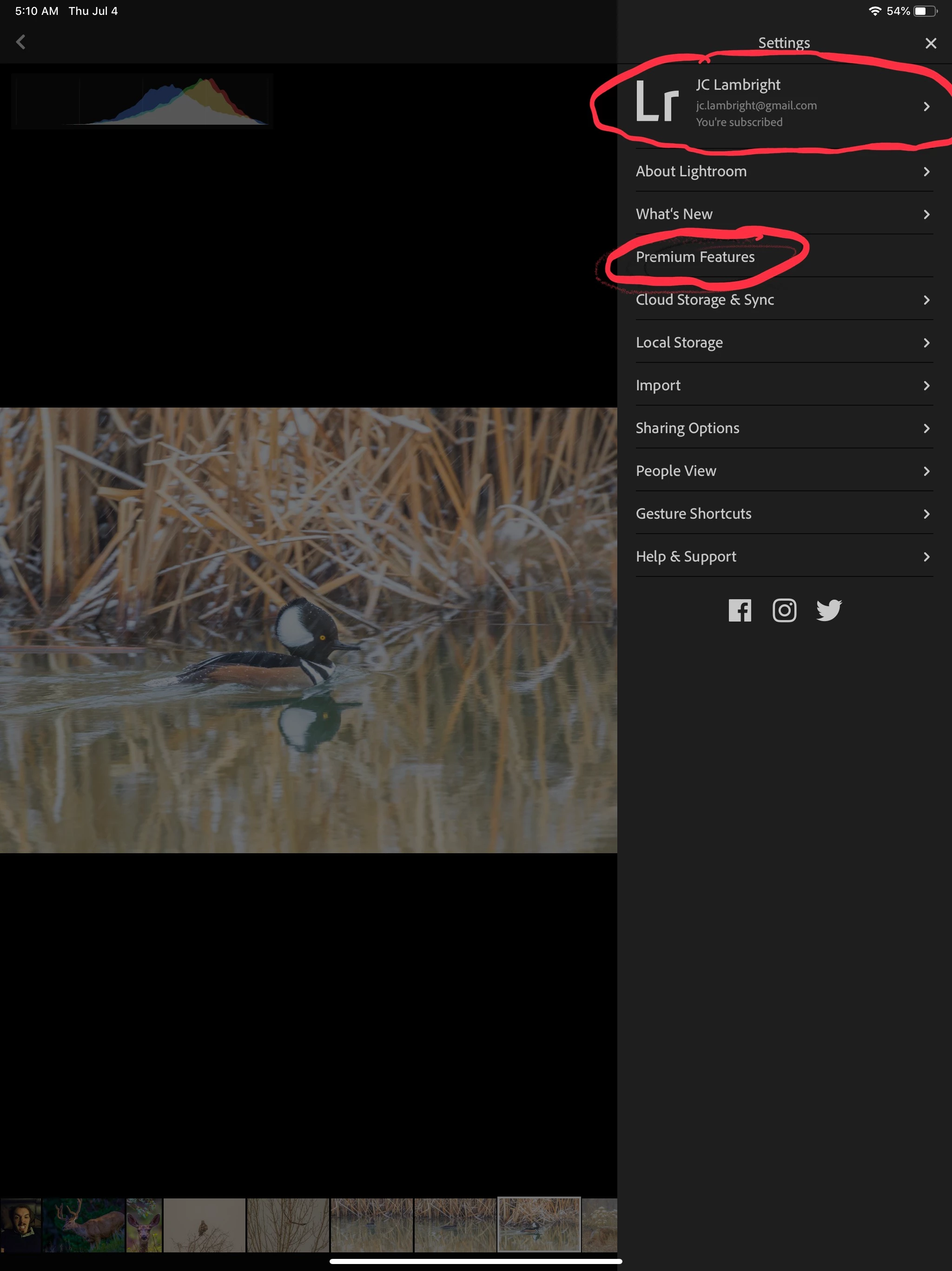 5. Confirm the Lightroom subscription is still valid in your iTunes account info.