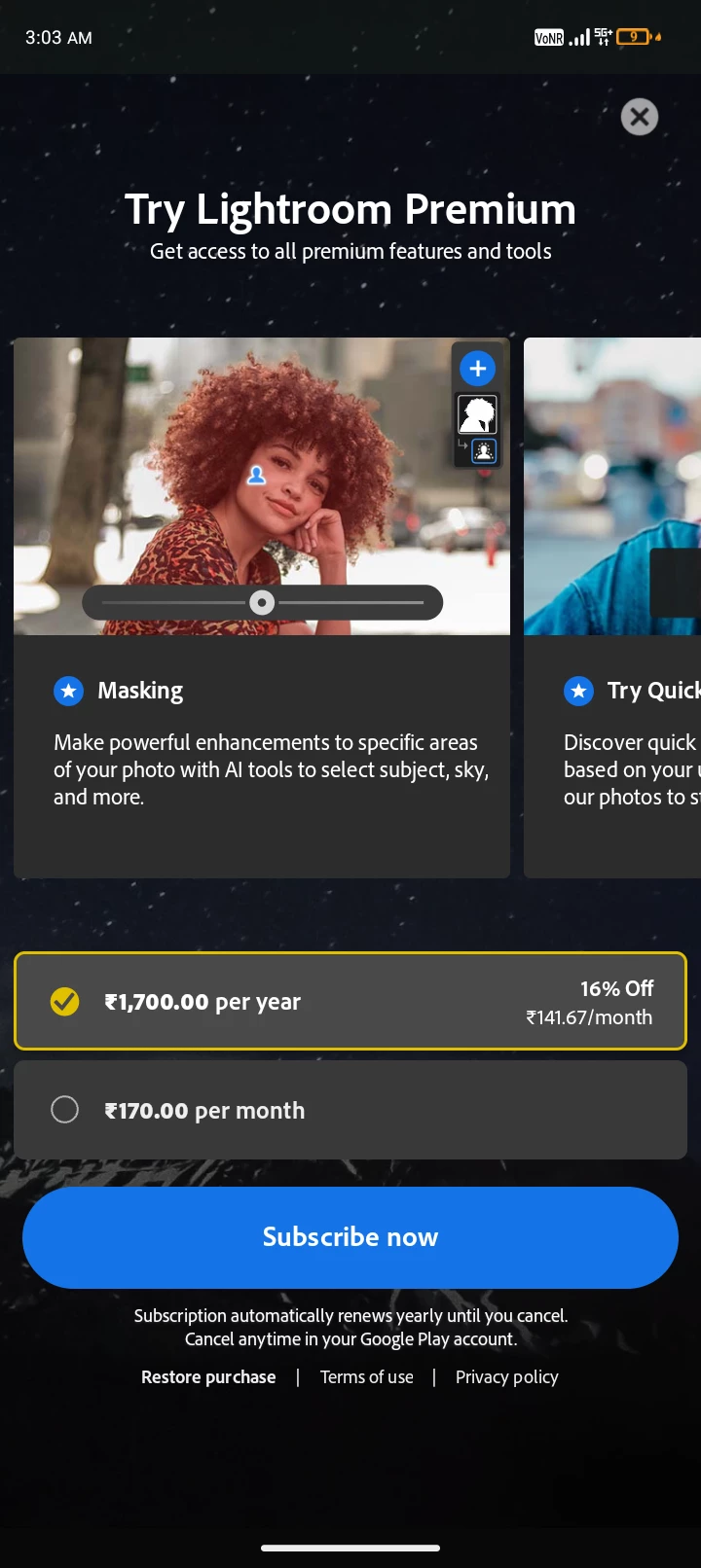 GGobinda_Santa0220ParticipantForum|Forum|1 year agoMarch 25, 2025QuestionLightroom needs a subscriptionForum|Forum|1 year agoMarch 25, 20251 reply73 viewsHelp me please Lightroom open Windows