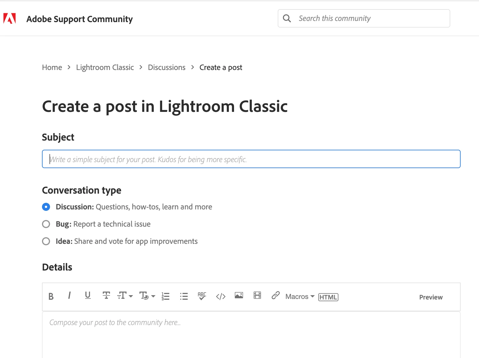P: Fine-tune the Subject Line of your Adobe Community Forum post for better results