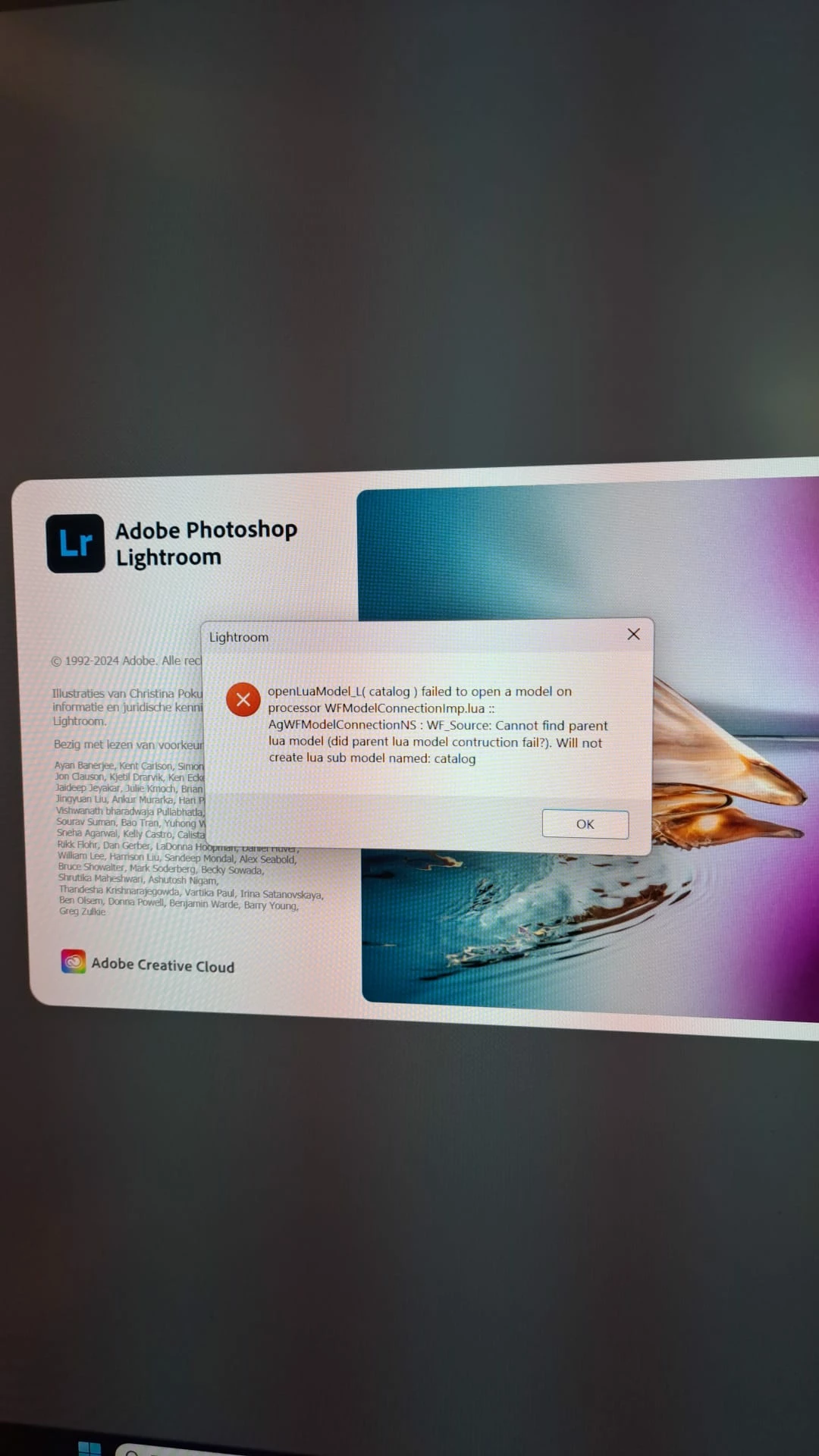 Lightroom not starting and getting strange notification