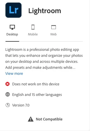 I currently pay monthly sub for Lightroom , have not used it for a while . It wont open on my Mac