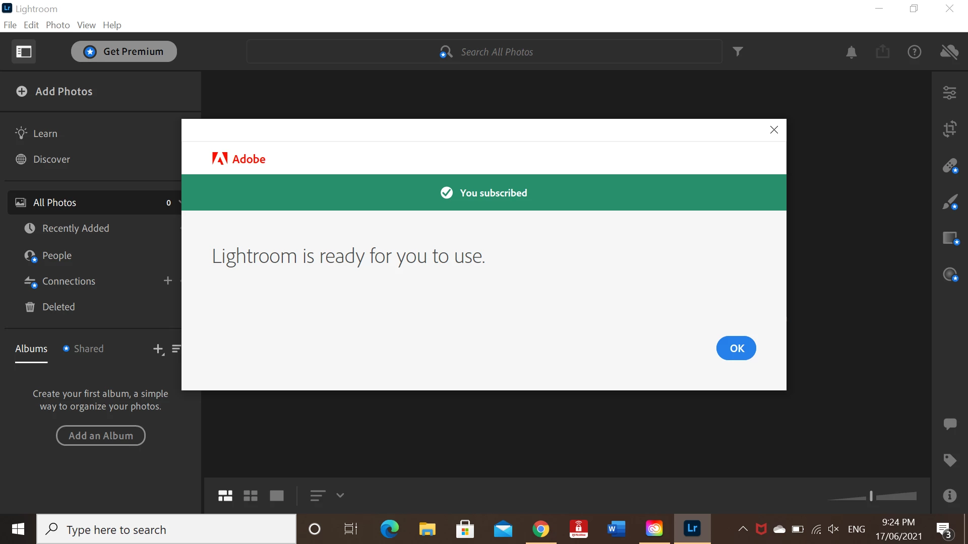 Lightroom Premium Ready for use but not working?