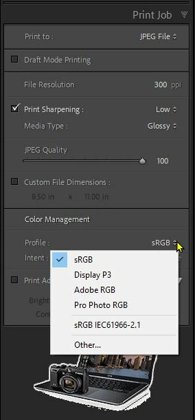 In the print moduel, I try print "to file (jpeg) and I get a message stating that "The custom profile selected for this print job is missing or invalid. If you continue this print job, the sRGB profile will be used". I continue with the print job.... when the jpg appears on my desktop, the print frame shows but the image does not. Can you help me? David T.