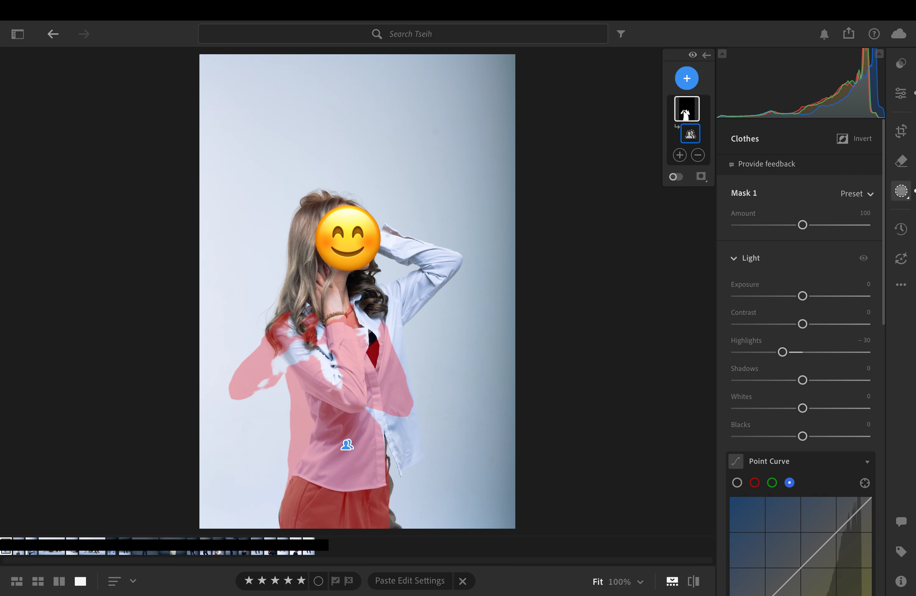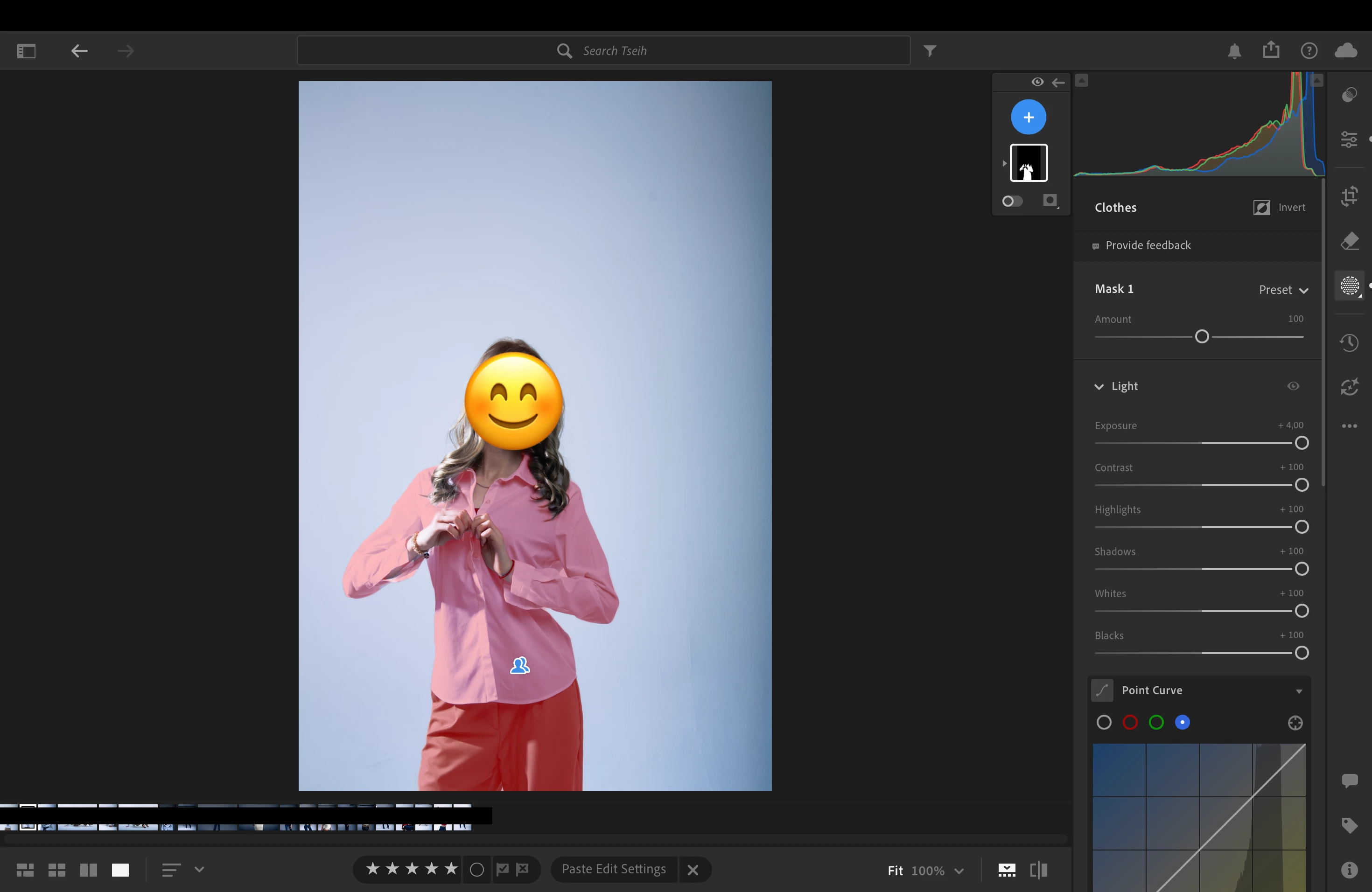 Edits and masks should only appear on the photo where they were made, unless manually applied.