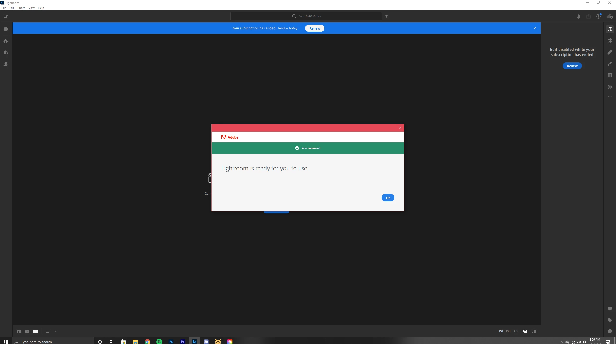 Lightroom says Subscription is Expired