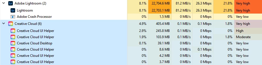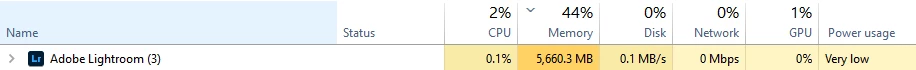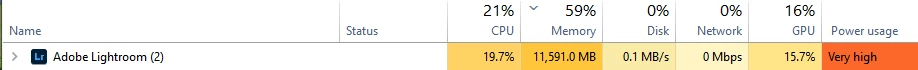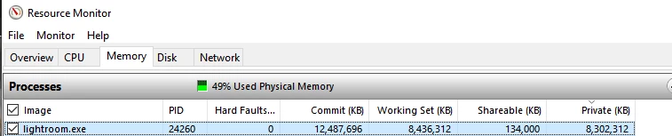 Lightroom using unlimited amount of ram when editing photos