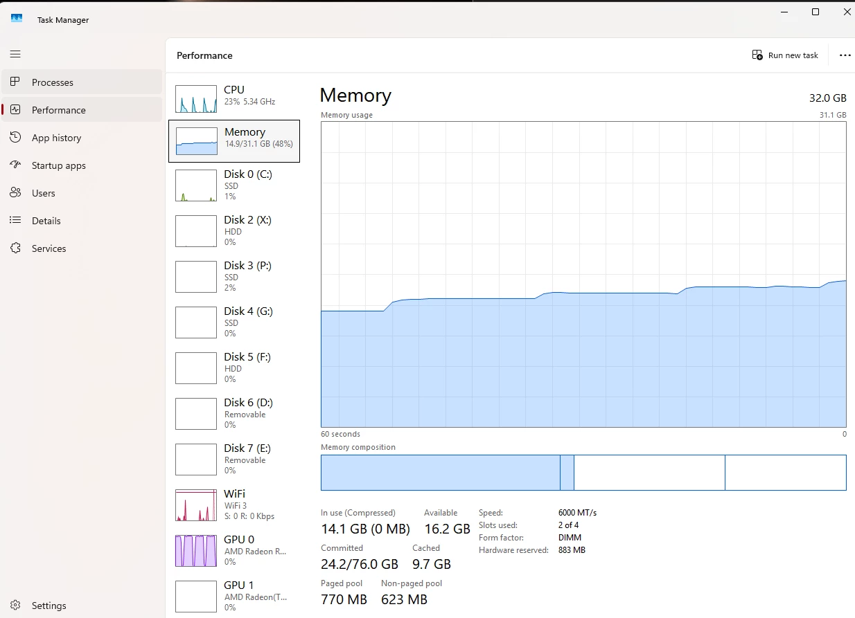 I have photos attached to showcase this ram usage. To get the results, simply, load up Task manger, boot up lightroom. see it sit nice and static. Then select some photos, click enhance, then do the default settings to denoise them (this gives a photo one by one to edit, so produces repeatable and discrete changes to the system memory usage, making it clear when more is being used and why) then watch as the ram steps up slowly until you have none left.