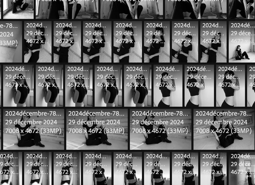 If my explanation is unclear, and you are more used to the LR app on iphone/ipad, this can be done by tapping 2 fingers several times, until no more information is displayed on the photos in the gris view).