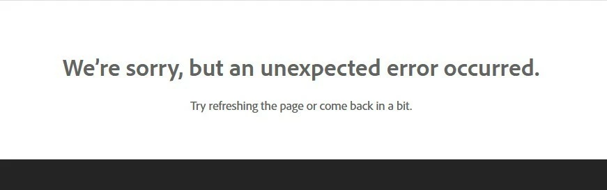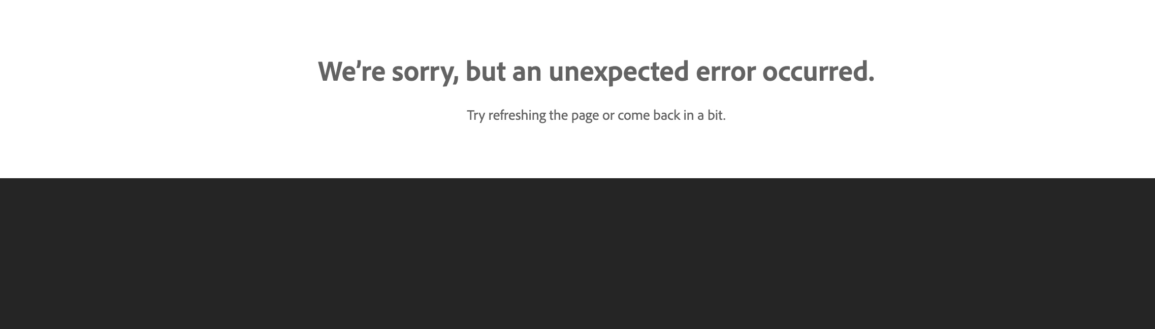 When I log out of my account from the Adobe page, the page loads fine. But once I log back in, all I get is the error message.