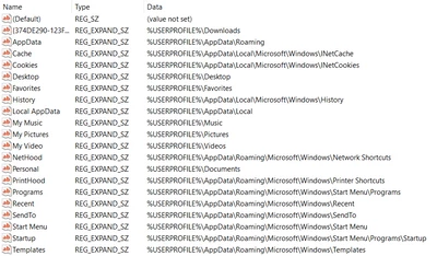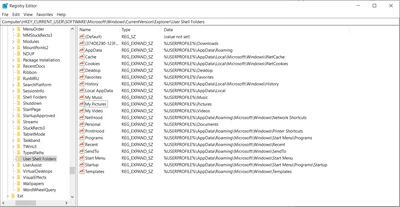 - Navigate to the following location in Registry Editor: HKEY_CURRENT_USER\SOFTWARE\Microsoft\Windows\CurrentVersion\Explorer\User Shell Folders