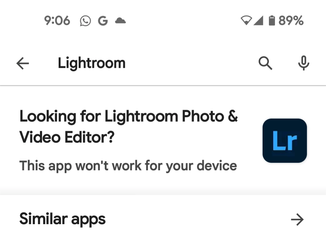 Lightroom won’t download on Android device