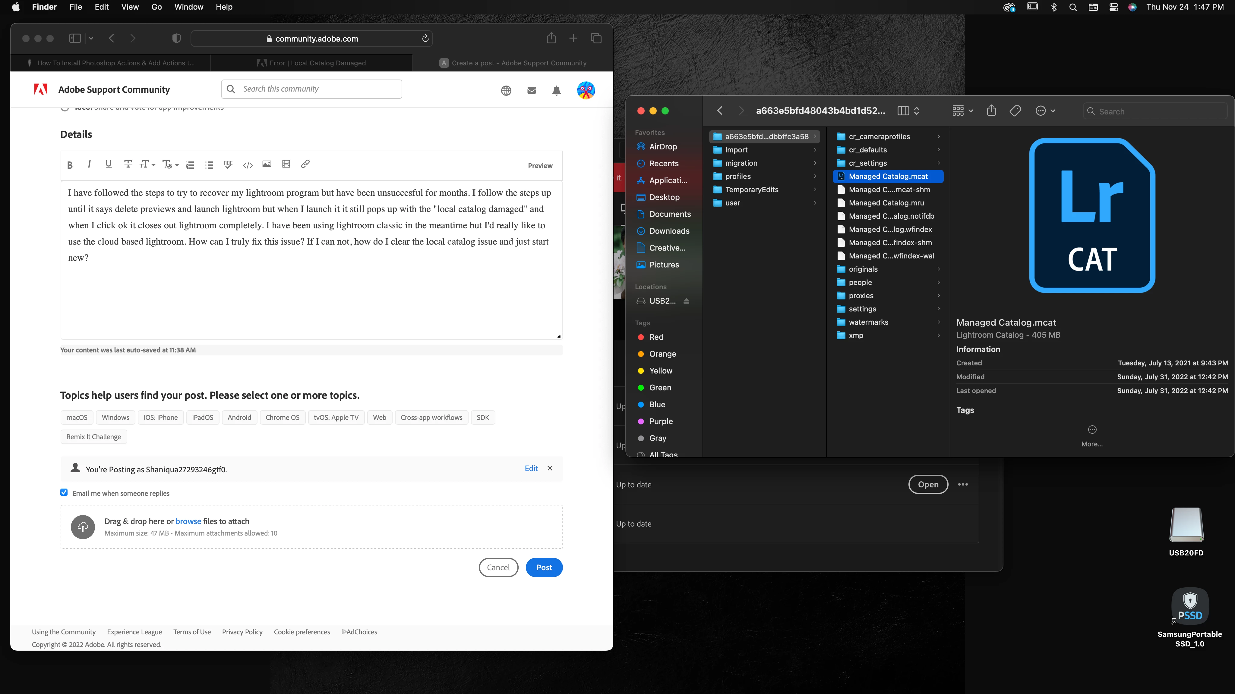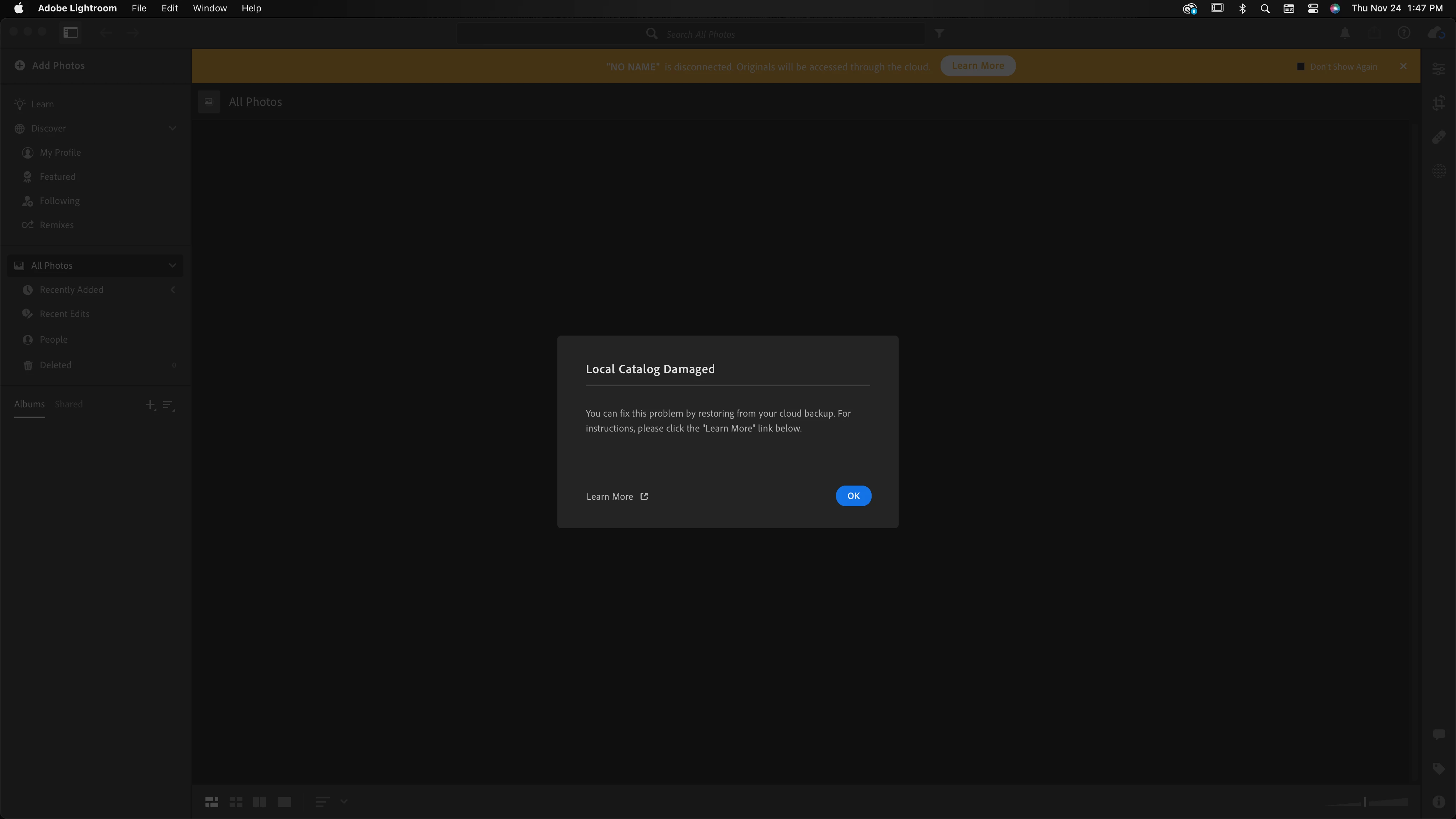 I have followed the steps to try to recover my lightroom program but have been unsuccesful for months. I follow the steps up until it says delete previews and launch lightroom but when I launch it it still pops up with the "local catalog damaged" and when I click ok it closes out lightroom completely. I have been using lightroom classic in the meantime but I'd really like to use the cloud based lightroom. How can I truly fix this issue? If I can not, how do I clear the local catalog issue and just start new?