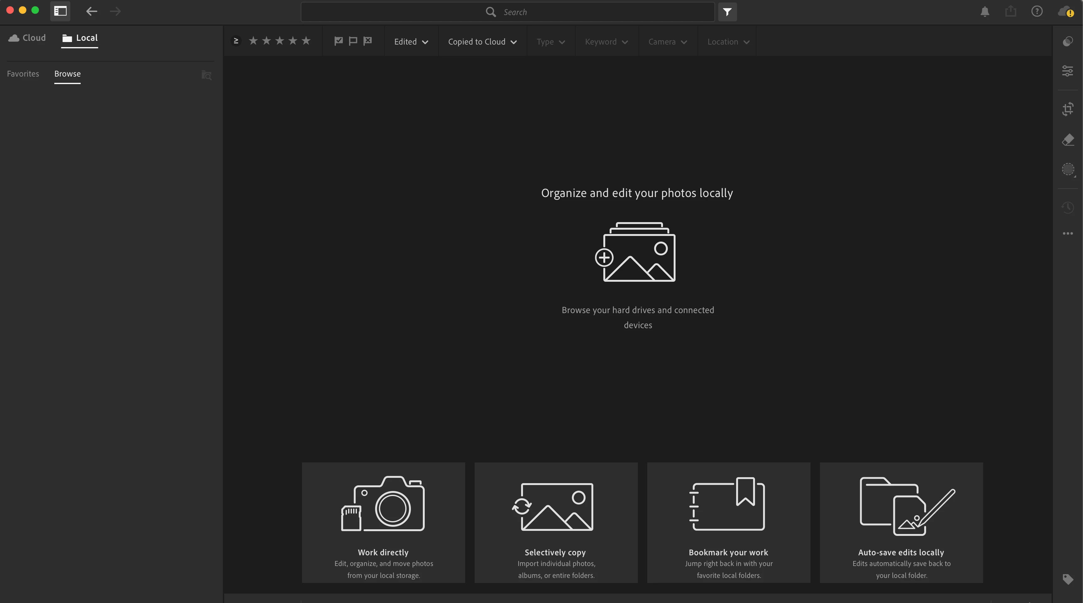 No options in local tab?! I cant figure out how to access photos locally