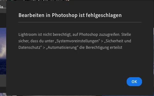 Since about 2 weeks (maybe since a recent PS update), I can't send a photo from LR to Photoshop for editing (using the built in menu option 'edit in Photoshop' when right-clicking a photo in my LR catalog).