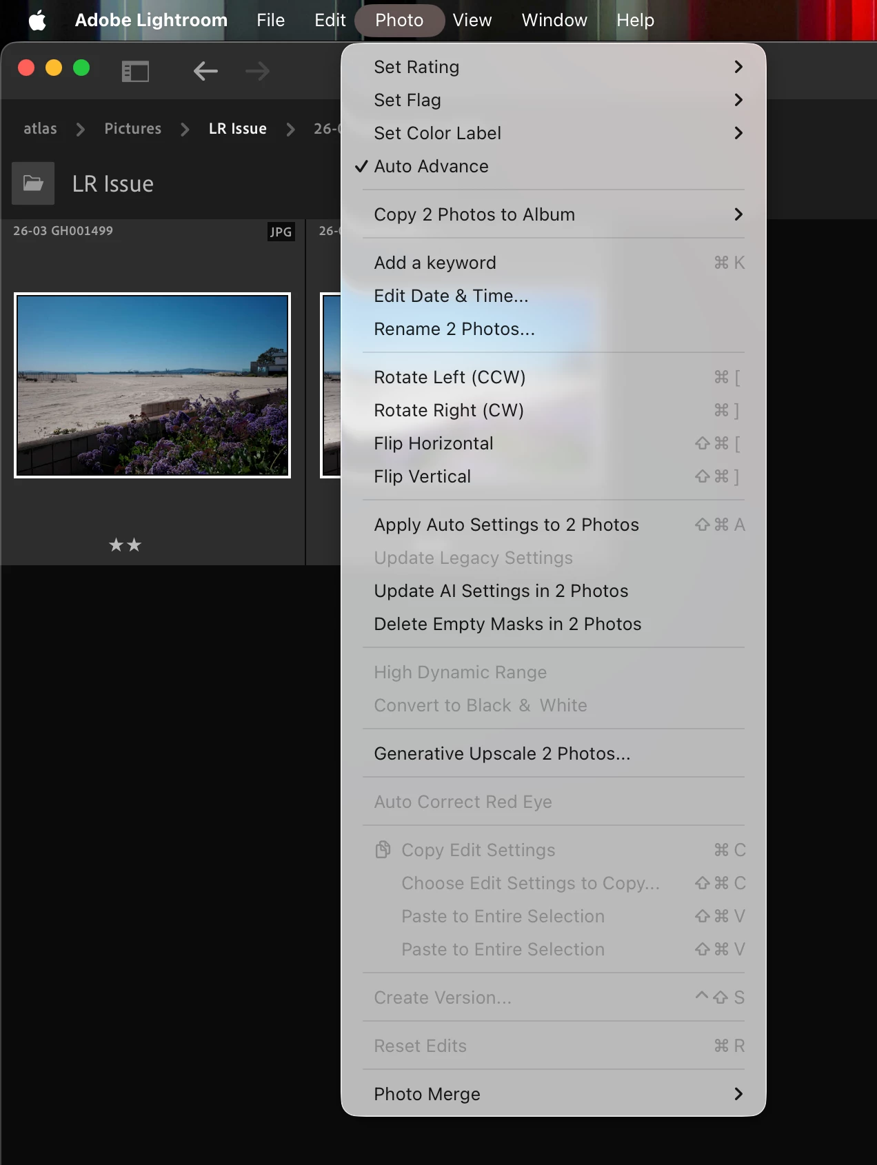 For example: If I select .DNG and its corresponding .JPG and then rename them using “YY-MM FILENAME” it would show in the Preview ““YY-MM FILENAME.DNG”. However when executed it would update the DNG to “YY-MM FILENAME.DNG” while the JPG would be named “YY-MM FILENAME-2.JPG”. This happens consistently when selecting multiple photos with identical filenames but separate file extensions, no matter if stored in the Adobe Cloud or locally. This would not happen in LrC 15.2!
