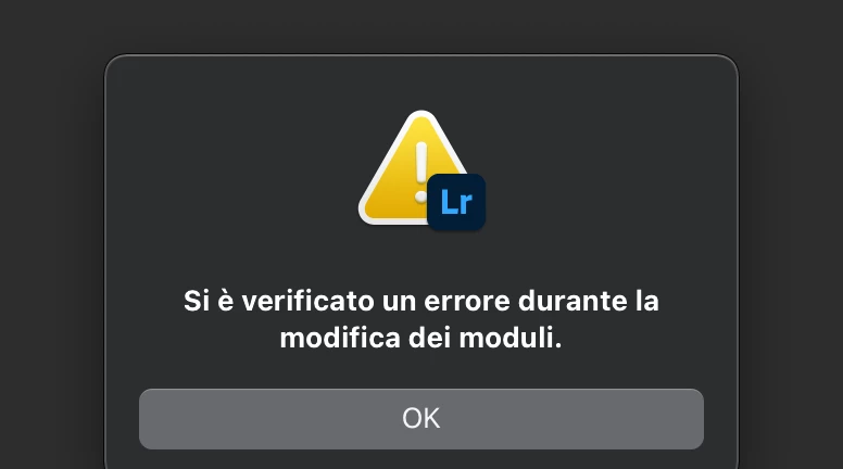 SStefano5E62ParticipantForum|Forum|4 years agoAugust 24, 2021QuestionLR does not runForum|Forum|4 years agoAugust 24, 20210 replies103 viewsI cannot open anymore any version of LR (coth Classic and Cloud). There's some error occurred at the opening. Can you help me? Below the screenshot... macOS
