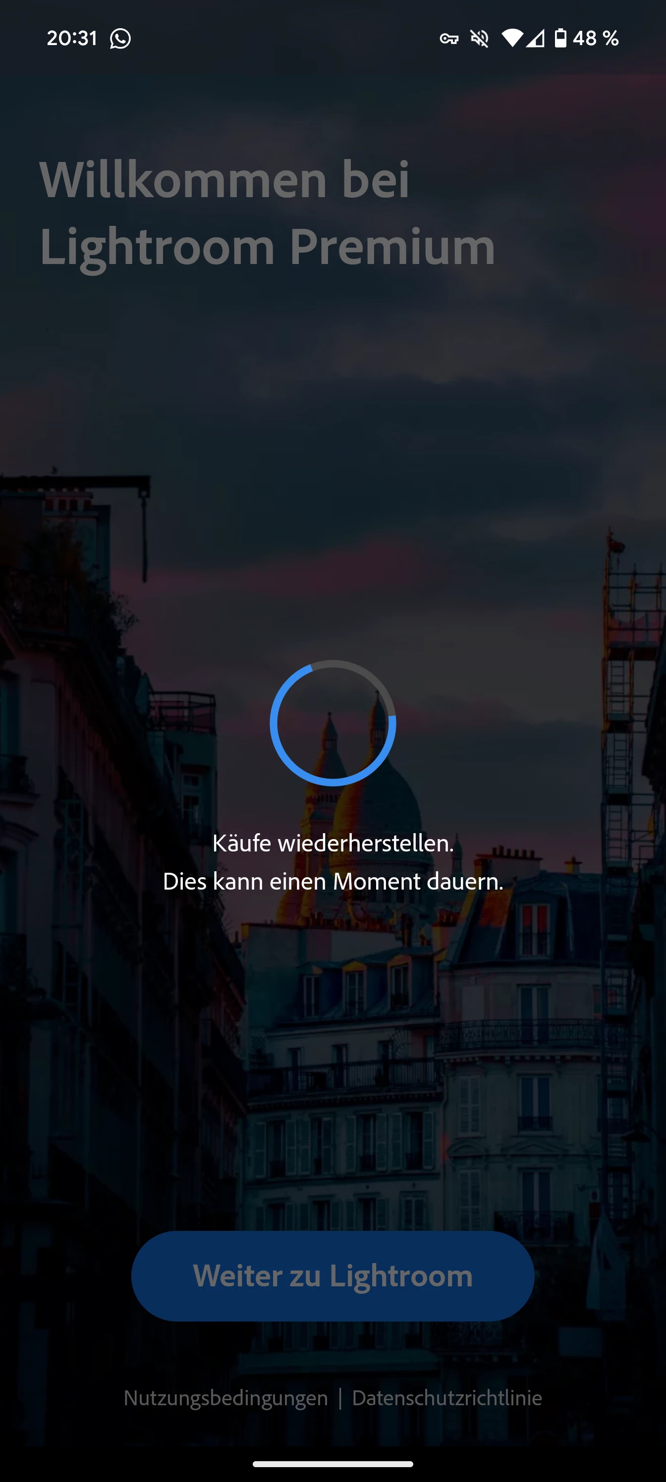 I've paid for my monthly subscription for lr mobile for Android, it says "Käufe wiederhergestellt", yet it just keeps on loading... Google play support is totally useless.