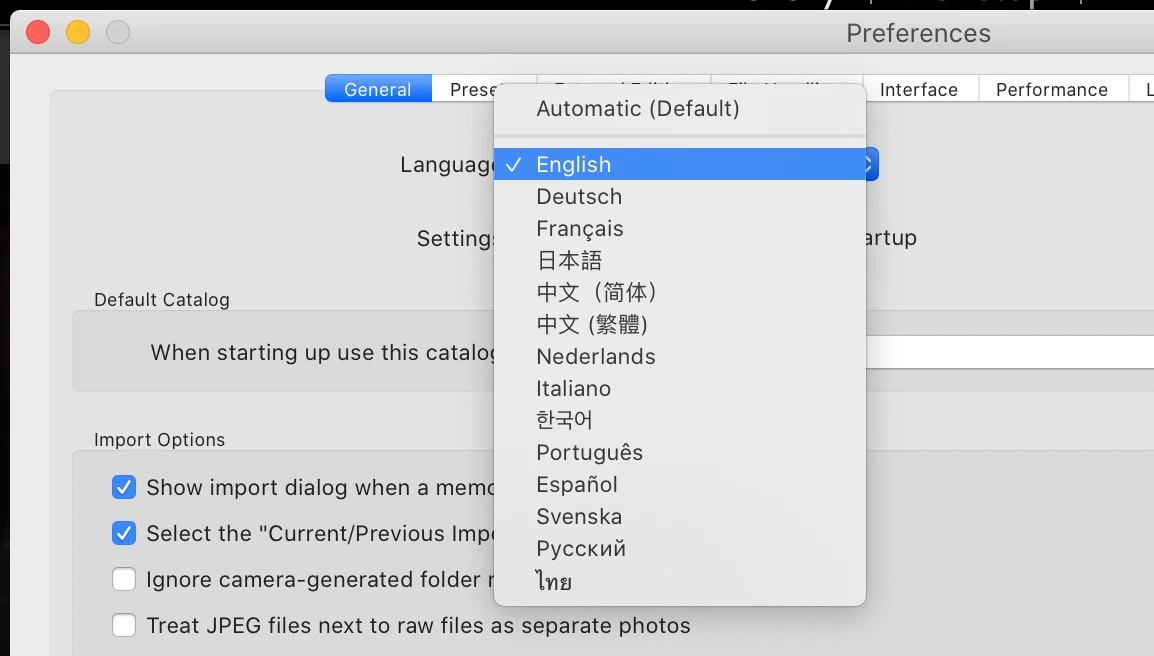 LrClassic: idioma preferencias / language preferences