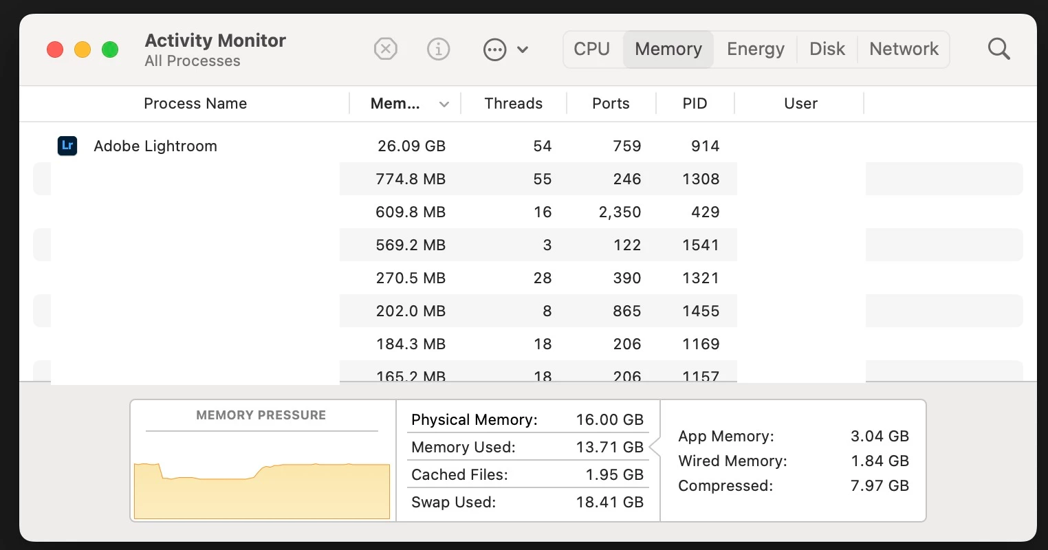 When syncing a large catalog (downloading all originals), Lightroom uses more and more memory (60 GB or more) until the entire system crashes. This problem occurs on multiple M1 Macs that I've tried. The computers all have at least 16 GB of RAM.