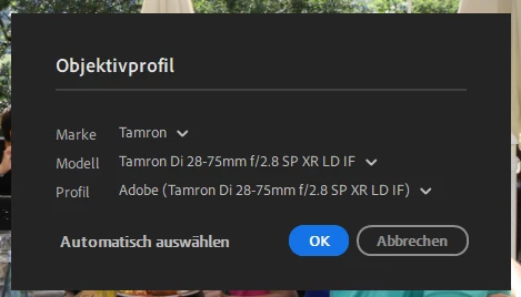 - It is not possilbe to chose the correct tamron objective. Only the 28-75 is available?