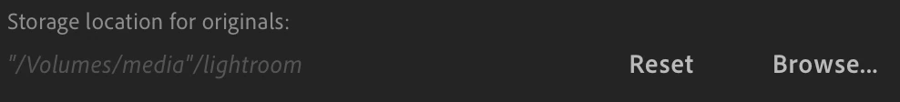 if I disconnect and reconnect, I end up in a permanent broken state telling me that volume is offline and to "Please reconnect to finish syncing." The volume is connected and, in fact, just hitting that Browse button and saving again will convince Lightroom to reuse the same path, but it'll begin by moving all of my photos into it (not entirely sure what this means, but it takes a very long time).
